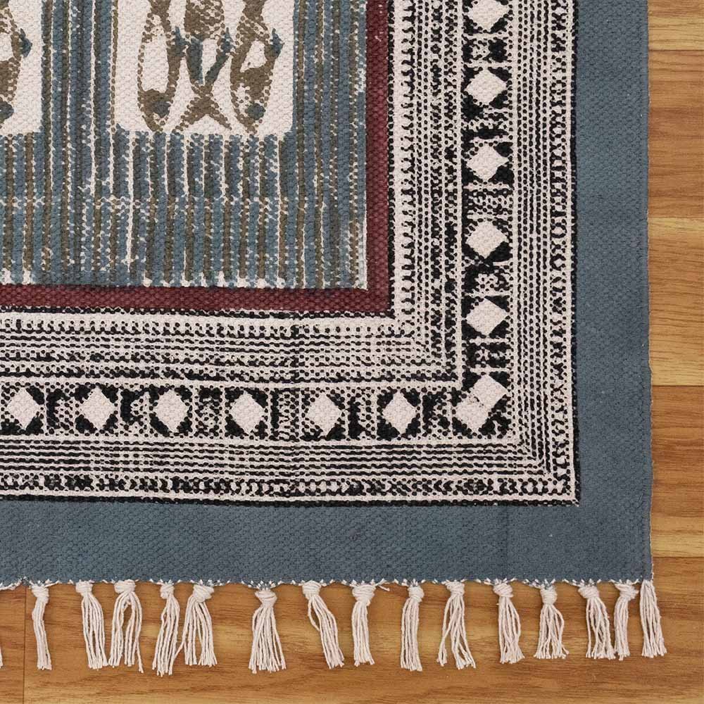 This is a beautiful handmade Cotton kilim rug weaved on Indian looms stamped with natural vegetable-dyes using hand-made wooden blocks achieving the perfection of block printing art of Jaipur. This is best suitable for your home office entrance, bedroom, living room, kids room, dining room, kitchen,outdoor patio, terrace, beach and garden.