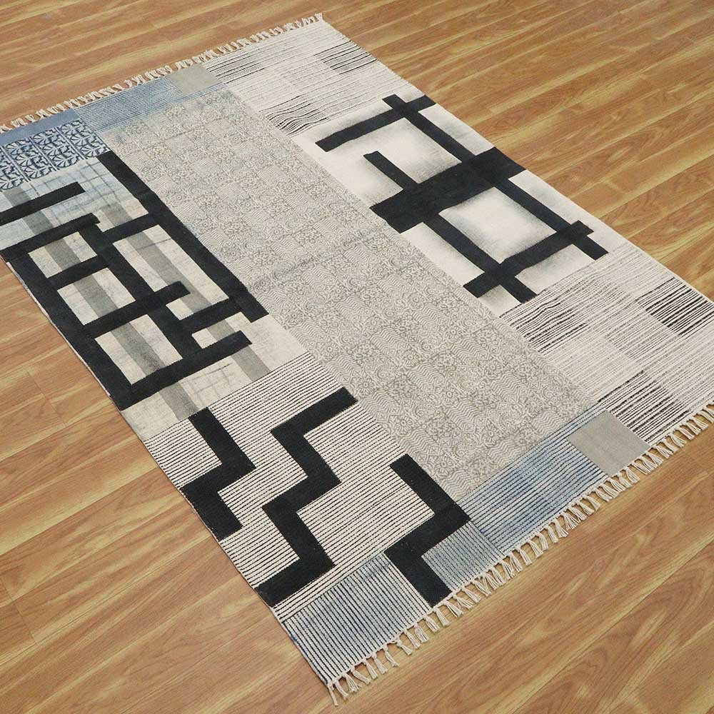 Abstract Handmade Cotton Rug Beautiful Dhurrie