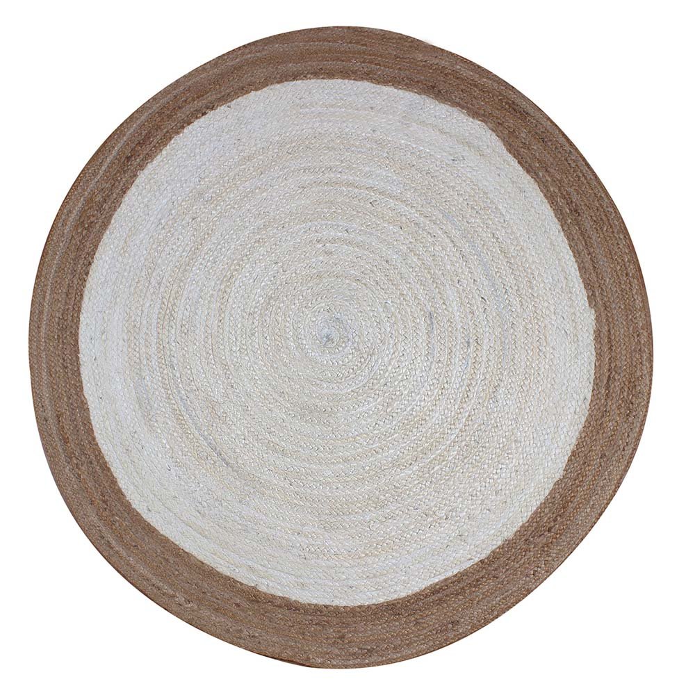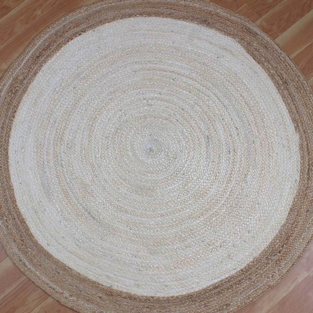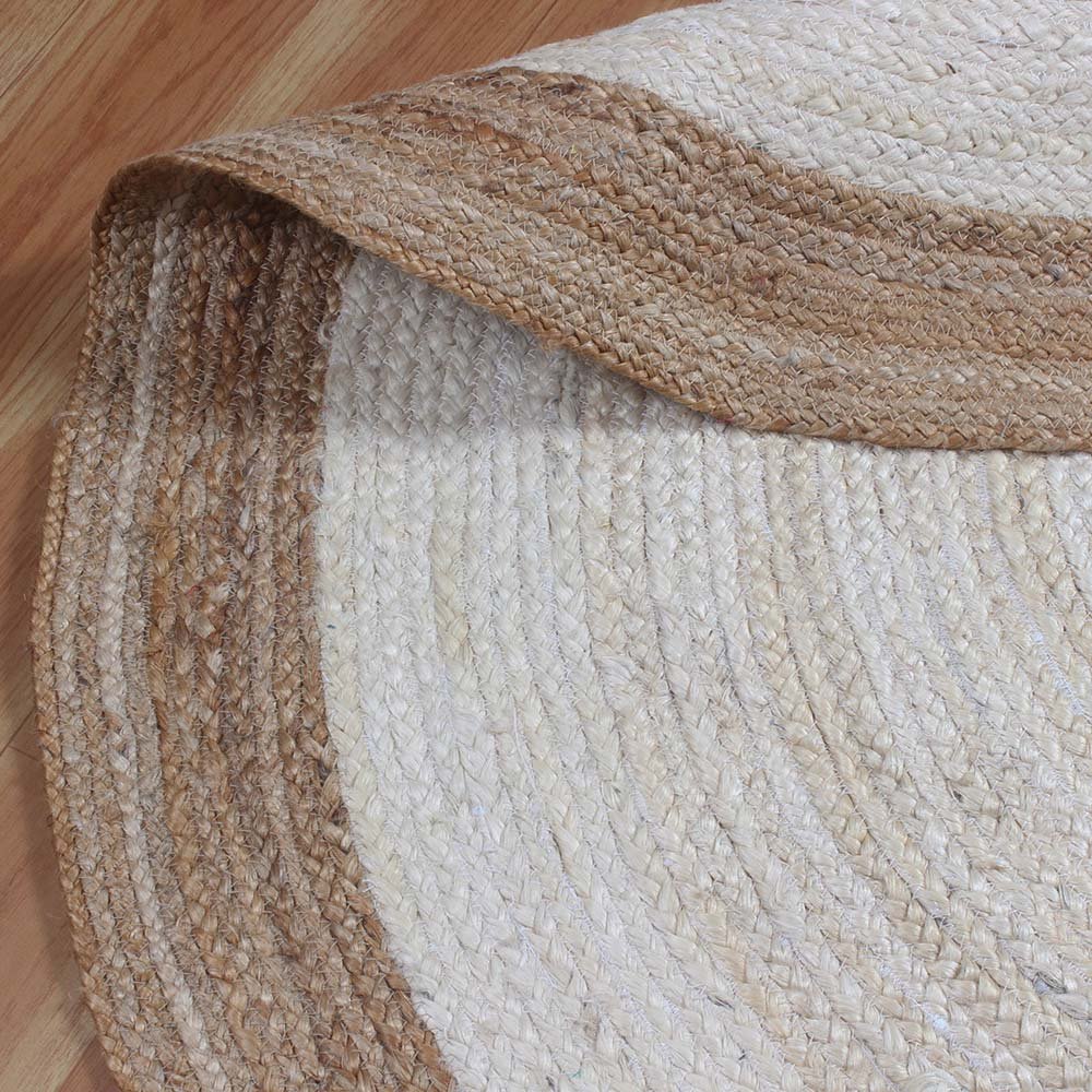 Beige White Hand Braided Jute Round Area Rug