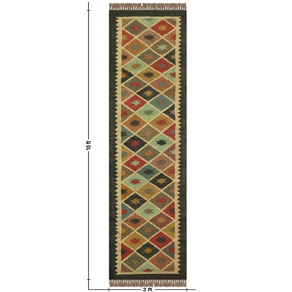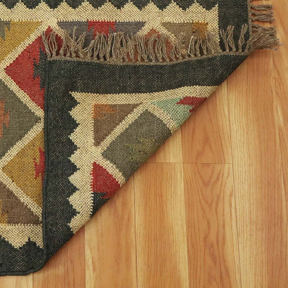Multicolor Geometric Hand Woven Wool and Jute Rug