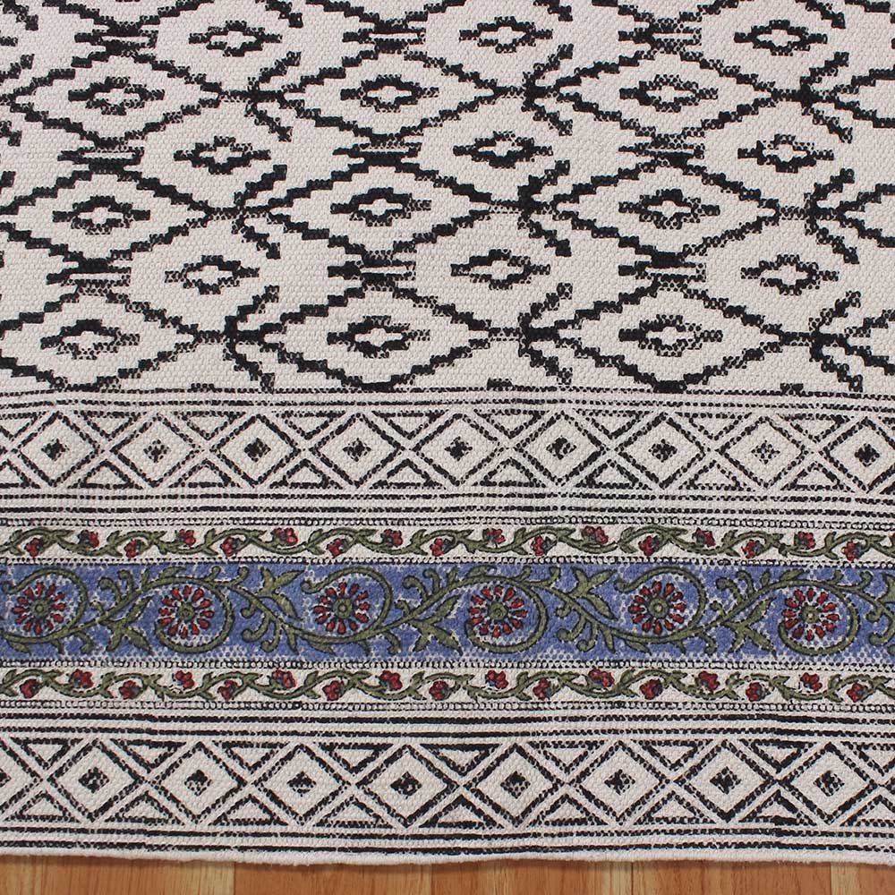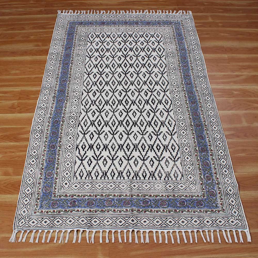 This is a beautiful handmade Cotton kilim rug weaved on Indian looms stamped with natural vegetable-dyes using hand-made wooden blocks achieving the perfection of block printing art of Jaipur. This is best suitable for your home office entrance, bedroom, living room, kids room, dining room, kitchen,outdoor patio, terrace, beach and garden.