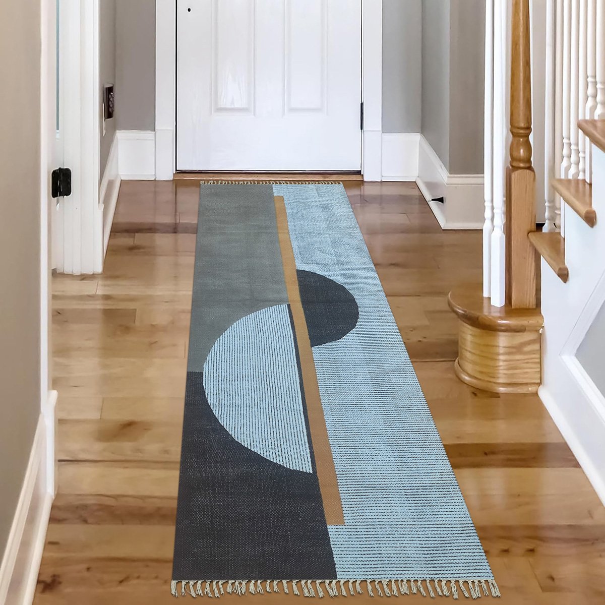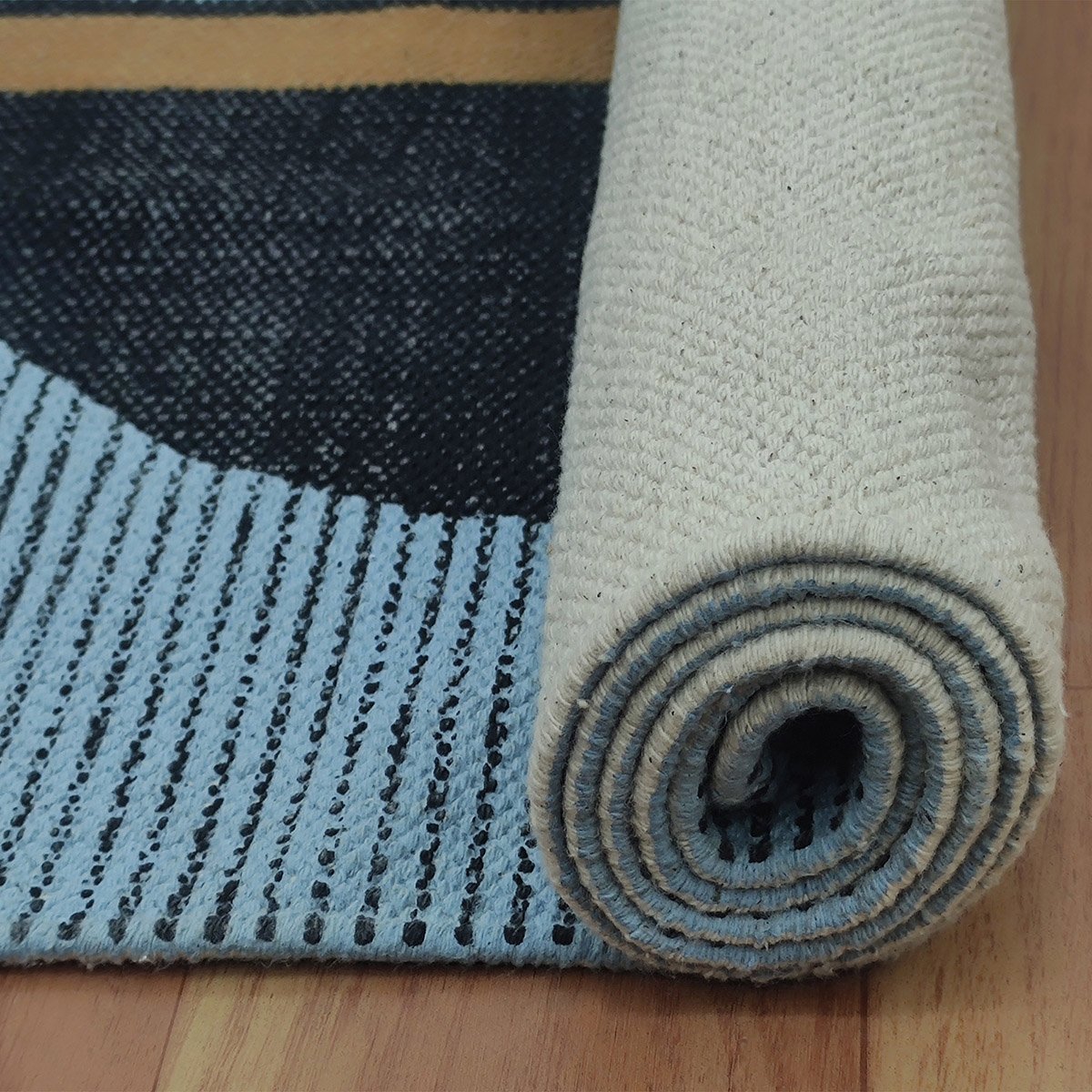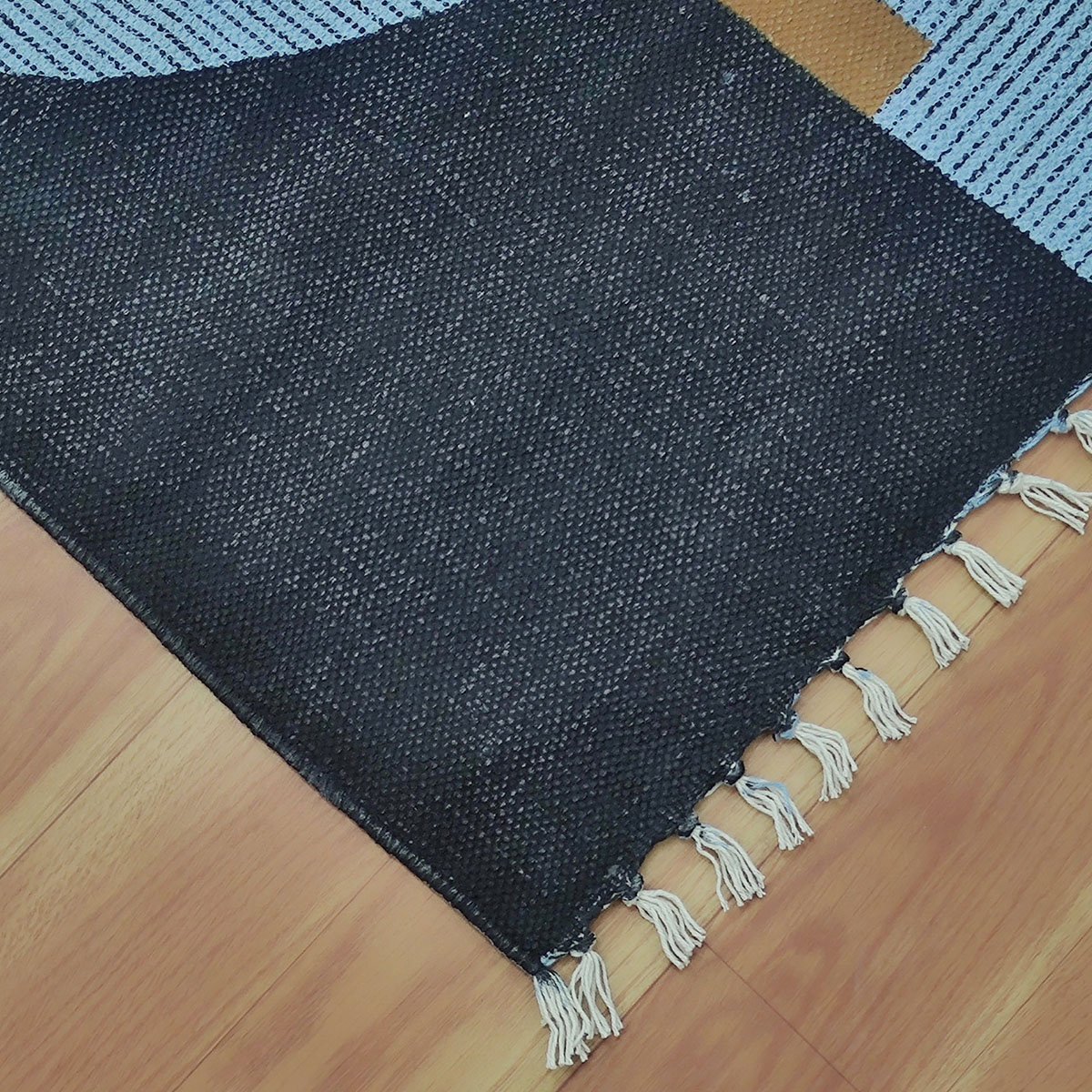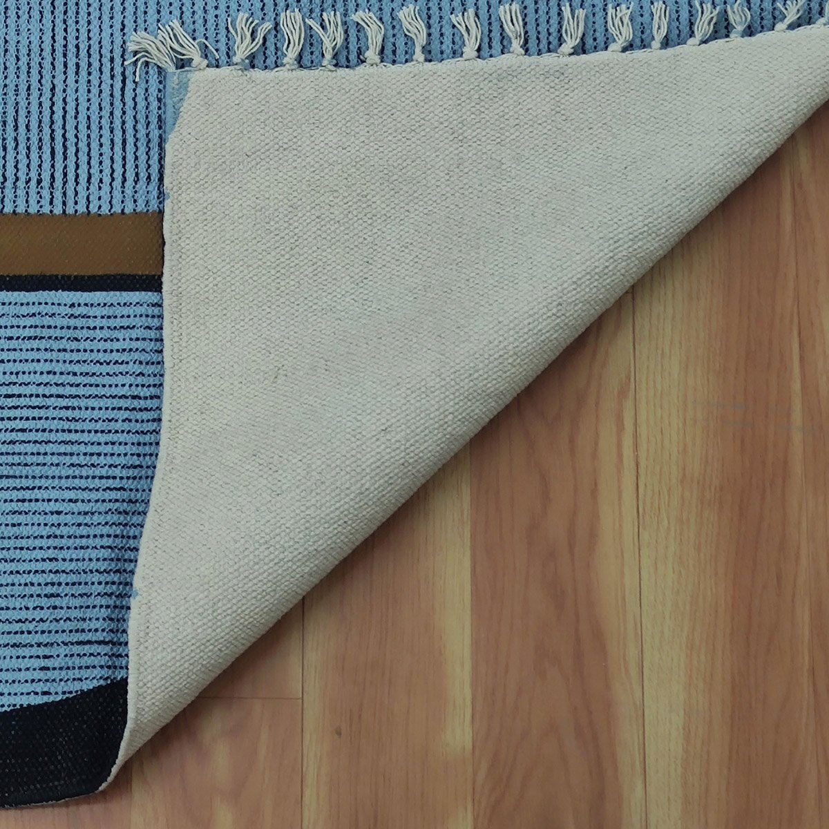 This is a beautiful handmade Cotton kilim rug weaved on Indian looms stamped with natural vegetable-dyes using hand-made wooden blocks achieving the perfection of block printing art of Jaipur. This is best suitable for your home office entrance, bedroom, living room, kids room, dining room, kitchen,outdoor patio, terrace, beach and garden.