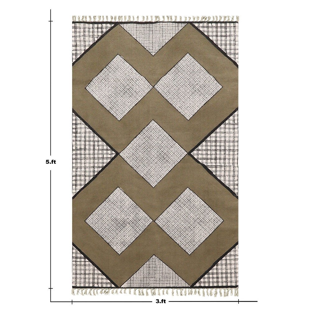 This is a beautiful handmade Cotton kilim rug weaved on Indian looms stamped with natural vegetable-dyes using hand-made wooden blocks achieving the perfection of block printing art of Jaipur. This is best suitable for your home office entrance, bedroom, living room, kids room, dining room, kitchen,outdoor patio, terrace, beach and garden.