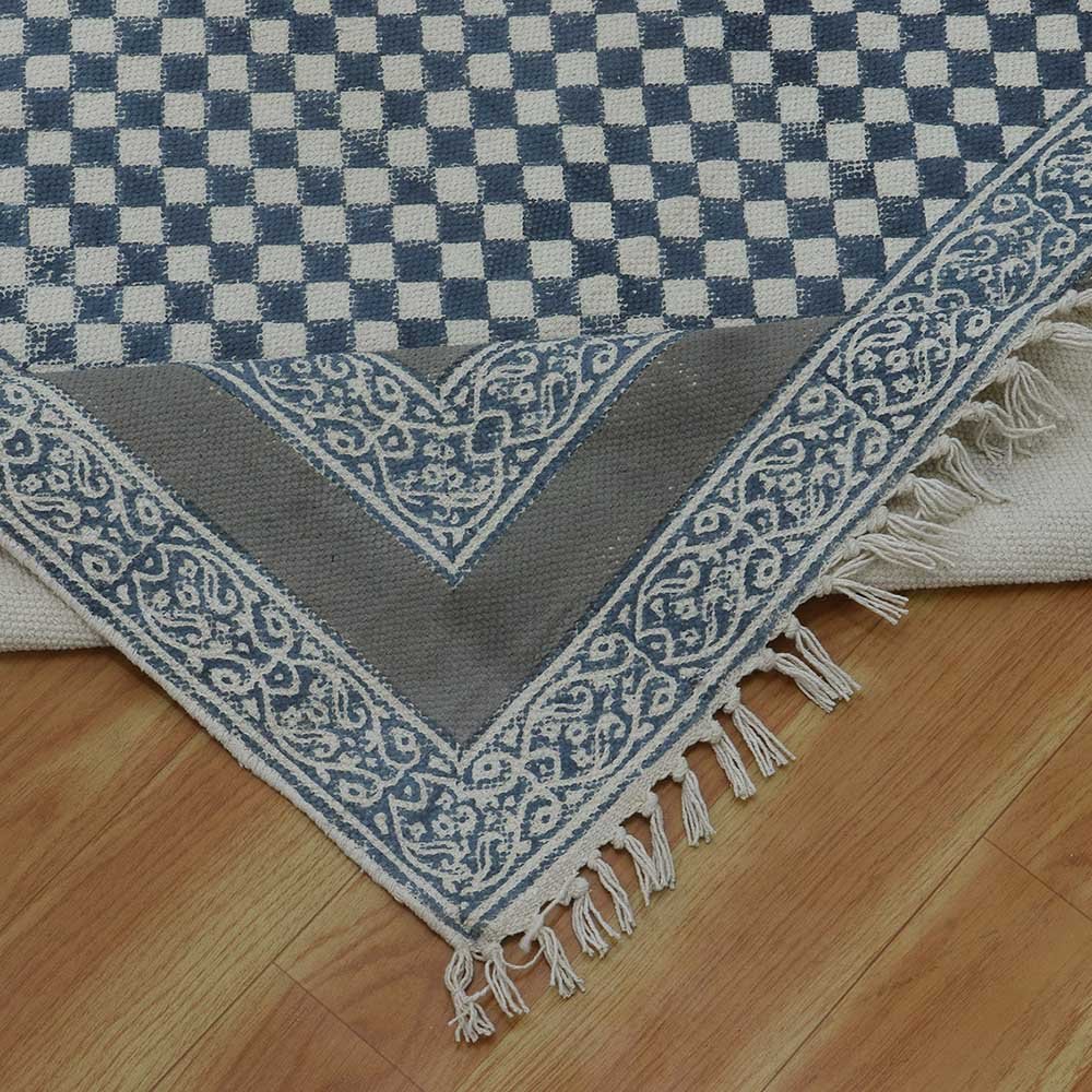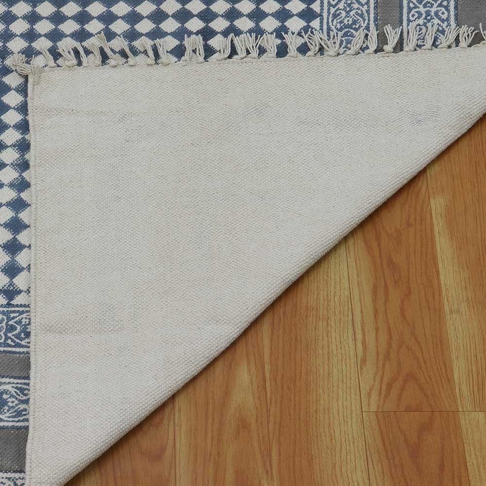 This is a beautiful handmade Cotton kilim rug weaved on Indian looms stamped with natural vegetable-dyes using hand-made wooden blocks achieving the perfection of block printing art of Jaipur. This is best suitable for your home office entrance, bedroom, living room, kids room, dining room, kitchen,outdoor patio, terrace, beach and garden.