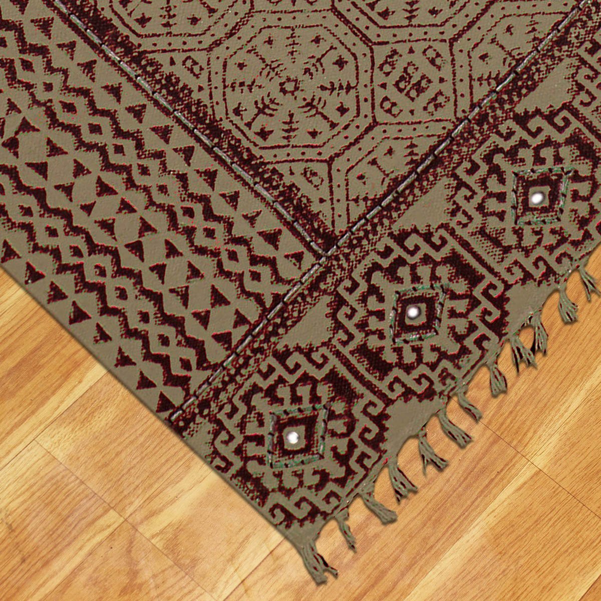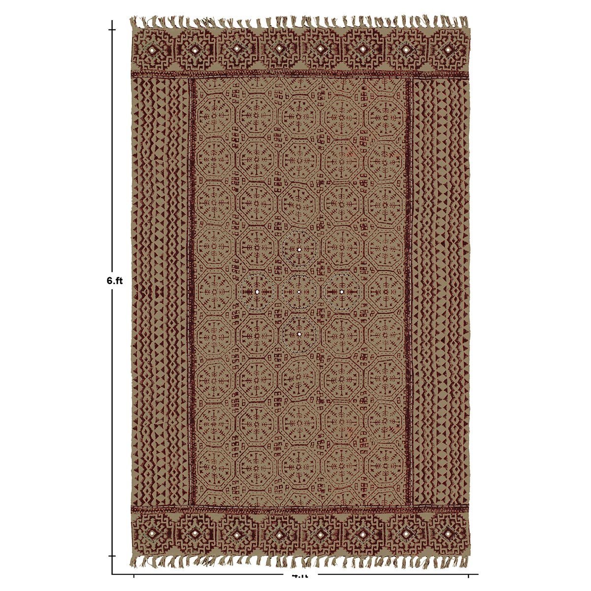 This is a beautiful handmade Cotton kilim rug weaved on Indian looms stamped with natural vegetable-dyes using hand-made wooden blocks achieving the perfection of block printing art of Jaipur. This is best suitable for your home office entrance, bedroom, living room, kids room, dining room, kitchen,outdoor patio, terrace, beach and garden.