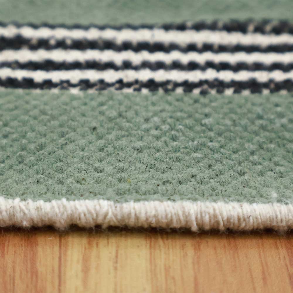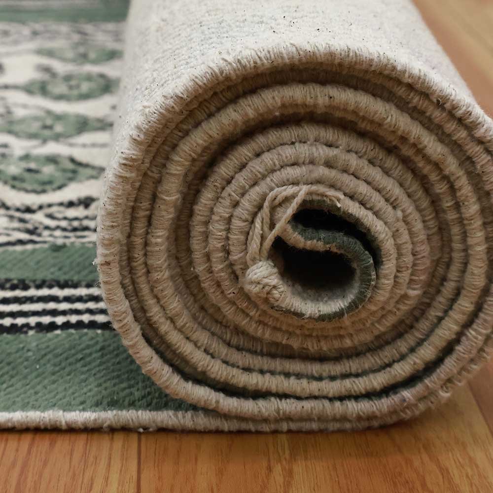 The rug is an outcome of 100% hand made process using natural cotton that are 100% eco friendly. The manufacturing process of this beautiful cotton rug is a 100% hand made and 100% eco-environment friendly process starting from the cultivating of natural cotton fiber to hand weaving these cotton rugs.