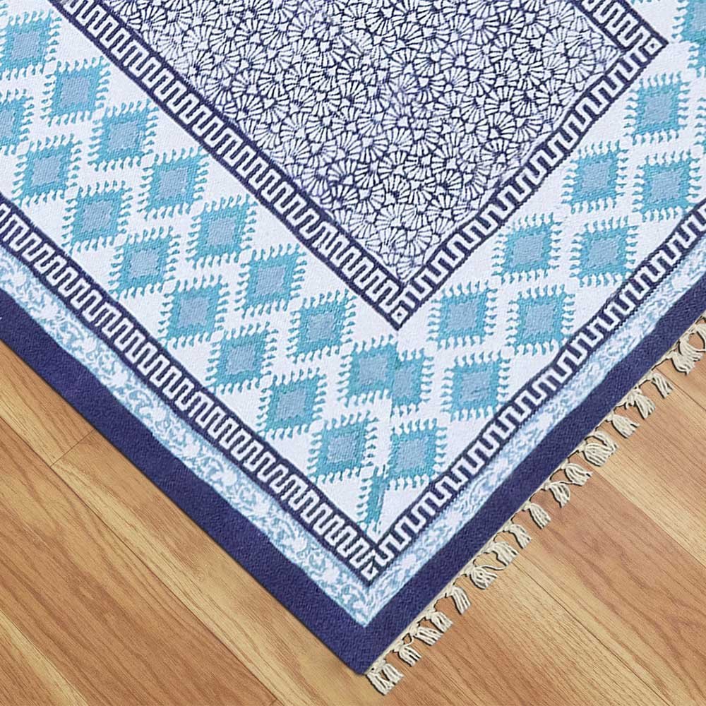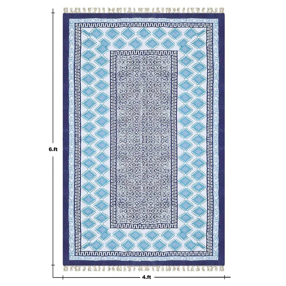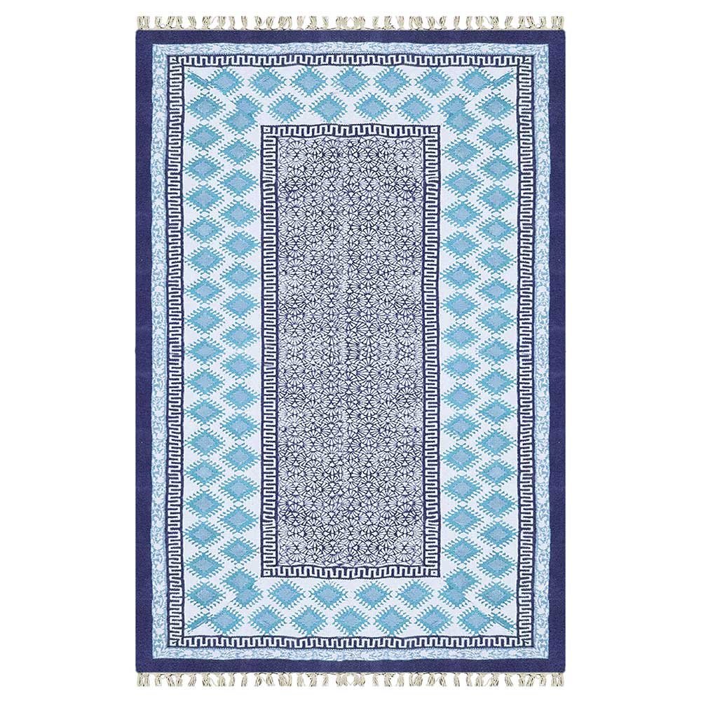 Geometric Blue Hand Printed Rug