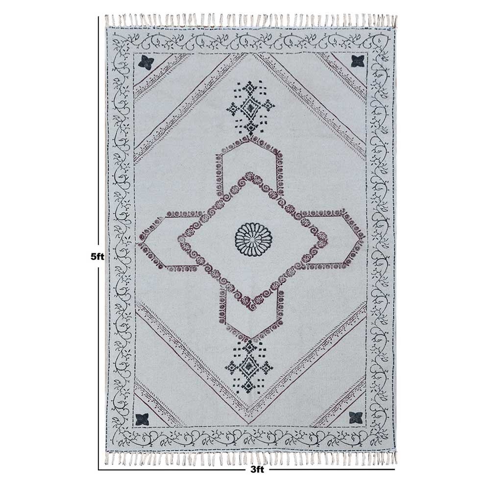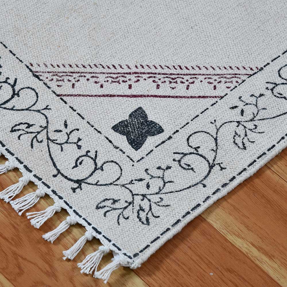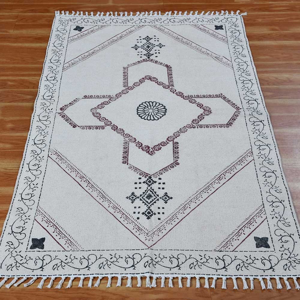 This is a beautiful handmade Cotton kilim rug weaved on Indian looms stamped with natural vegetable-dyes using hand-made wooden blocks achieving the perfection of block printing art of Jaipur. This is best suitable for your home office entrance, bedroom, living room, kids room, dining room, kitchen,outdoor patio, terrace, beach and garden.