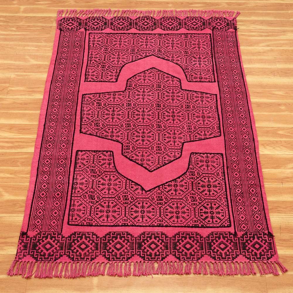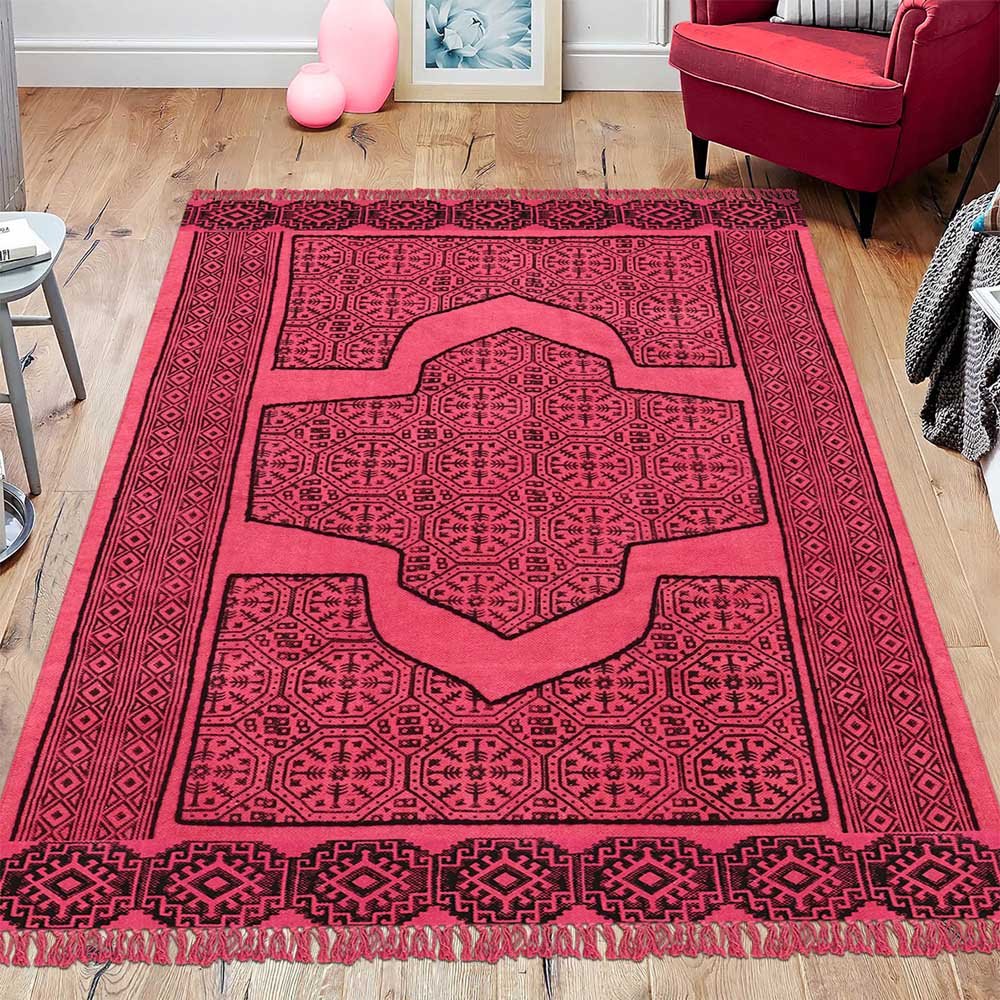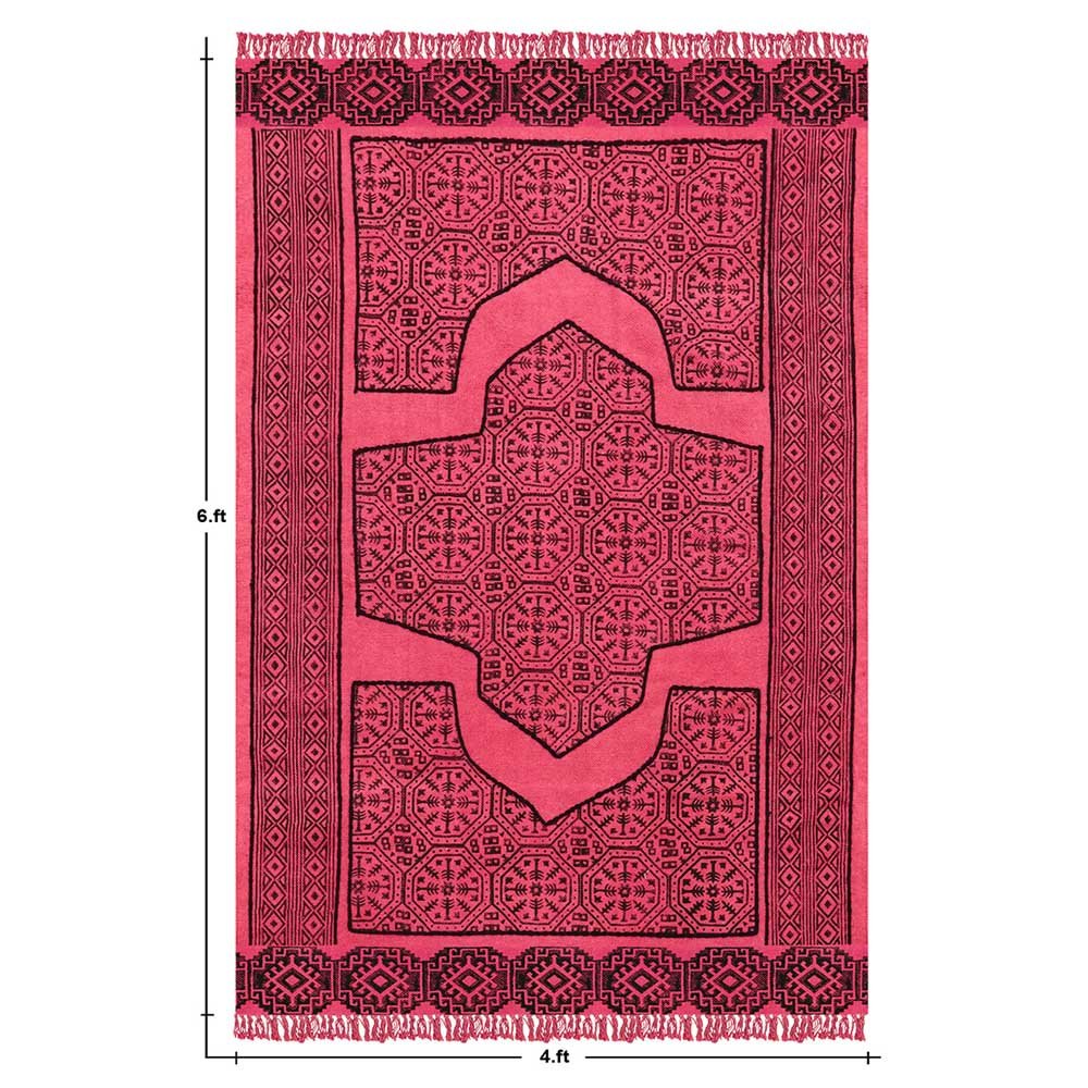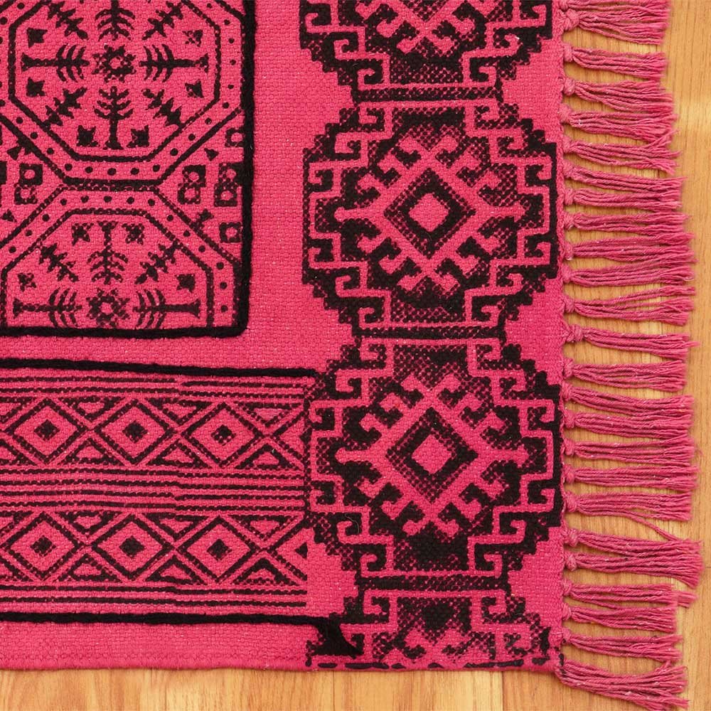 This is a beautiful handmade Cotton kilim rug weaved on Indian looms stamped with natural vegetable-dyes using hand-made wooden blocks achieving the perfection of block printing art of Jaipur. This is best suitable for your home office entrance, bedroom, living room, kids room, dining room, kitchen,outdoor patio, terrace, beach and garden.