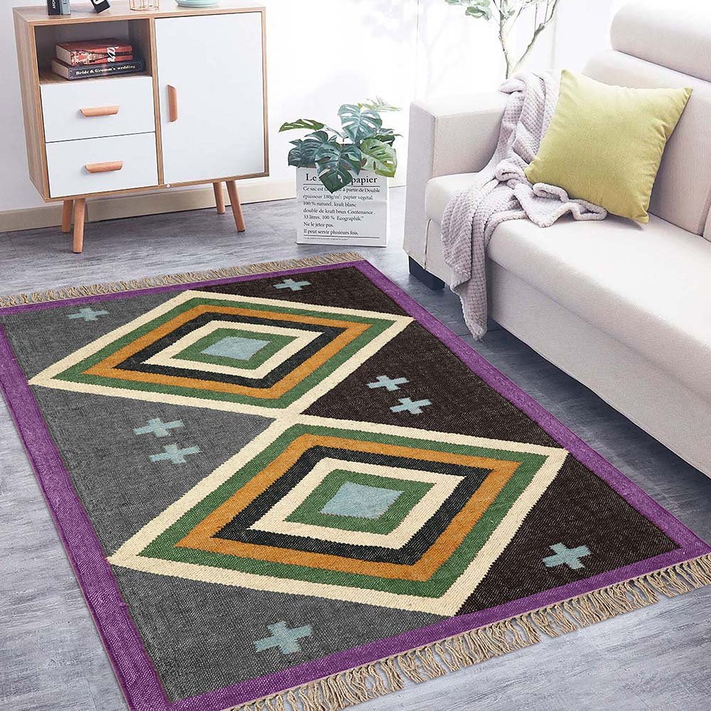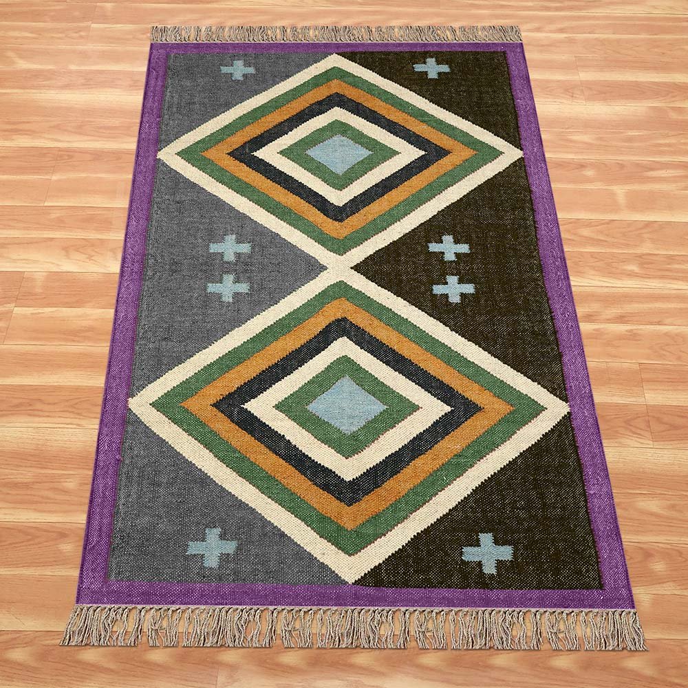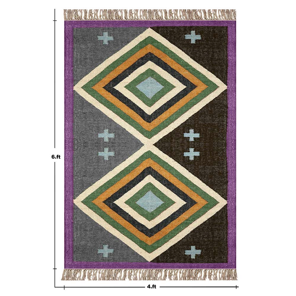 Geometric Multicolor Hand Woven Wool Jute Area Rug