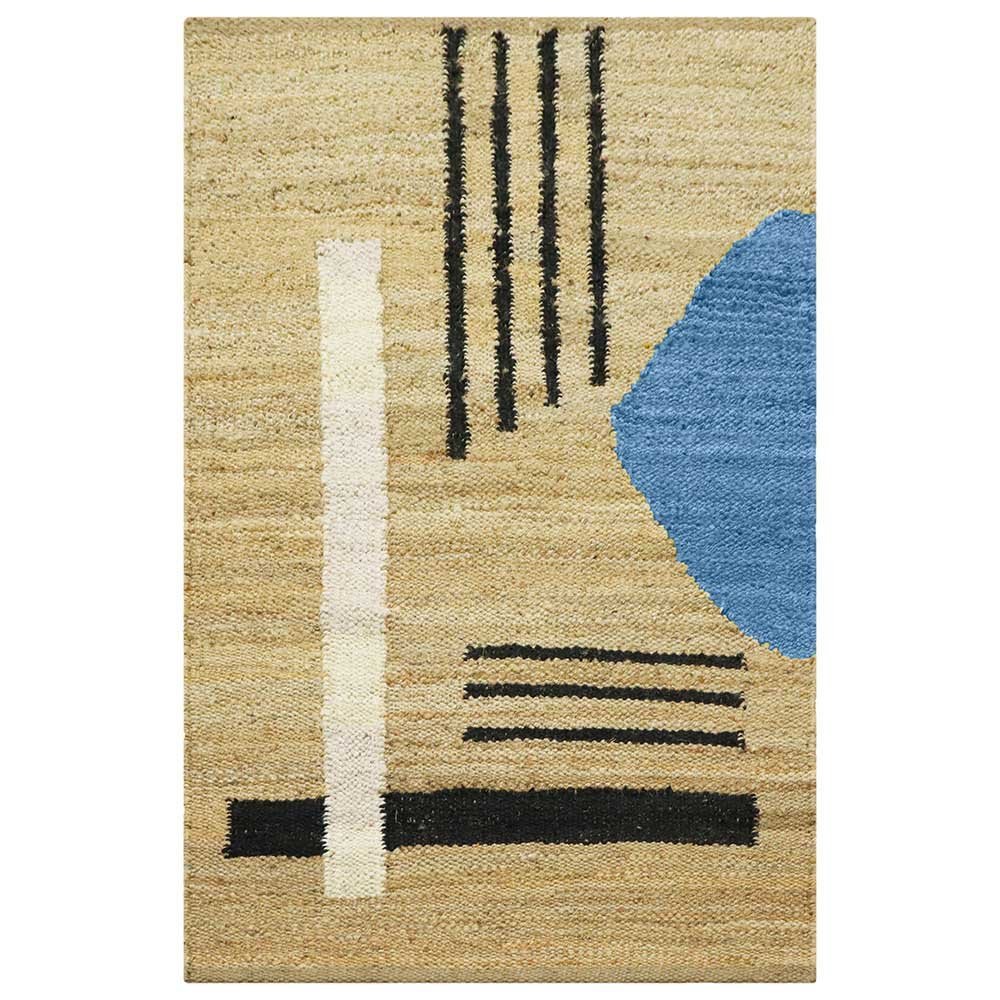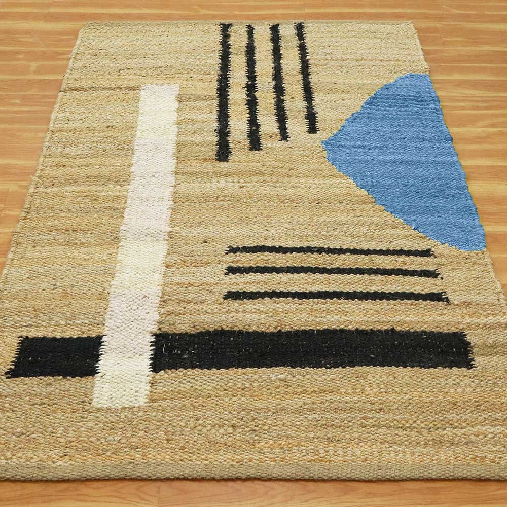 Geometric Sky Blue Hand Woven Jute Area Rug