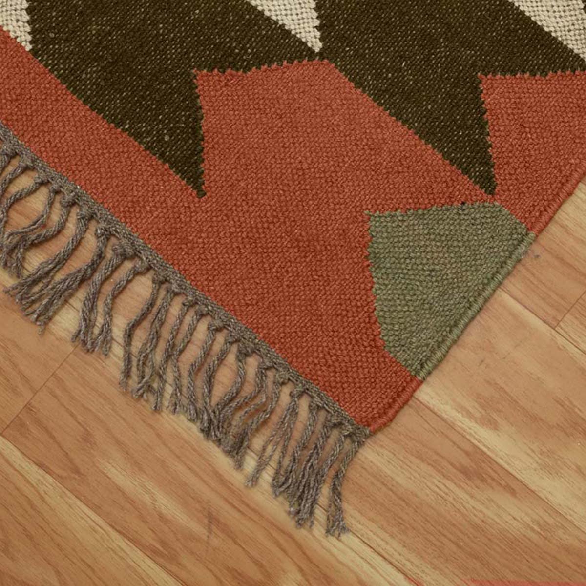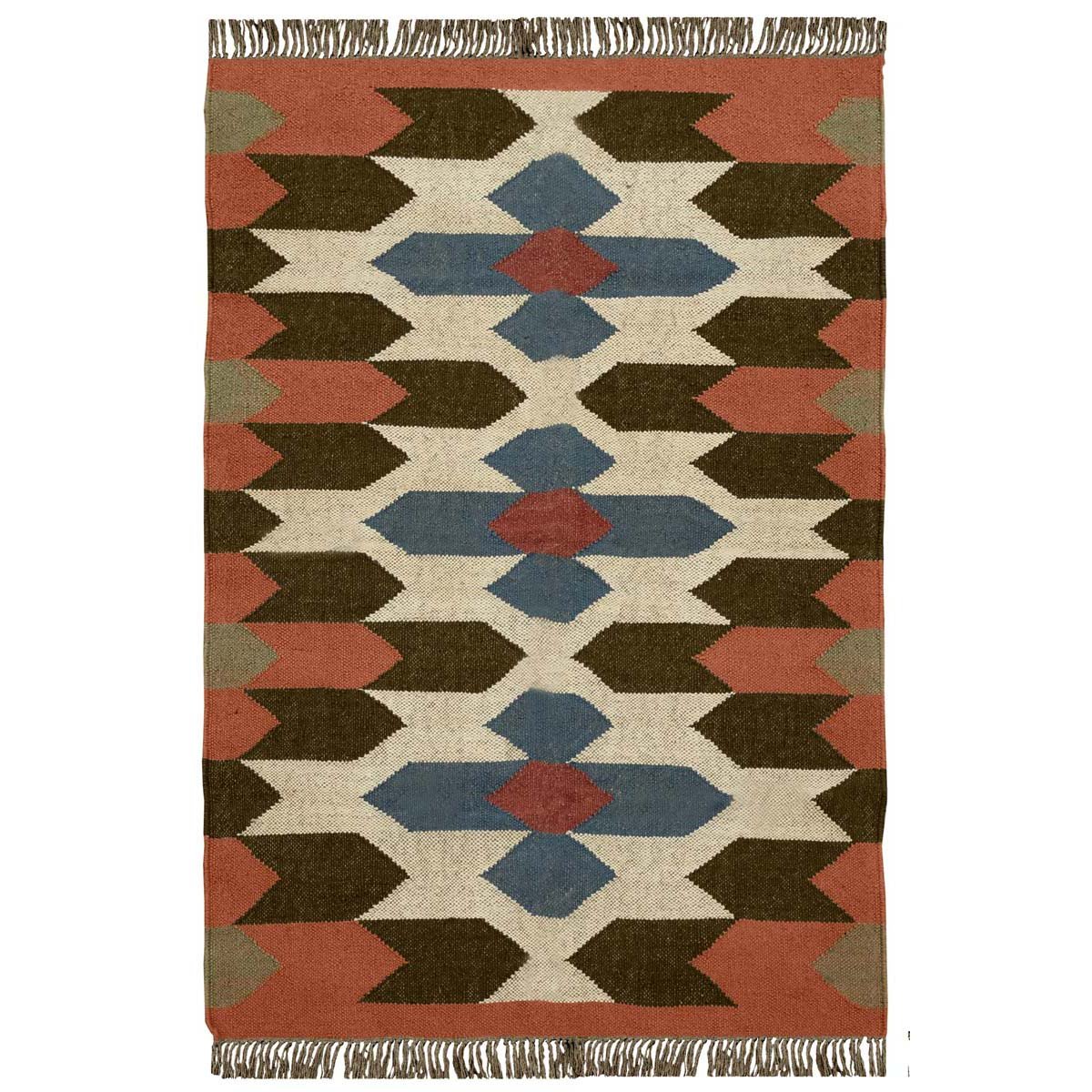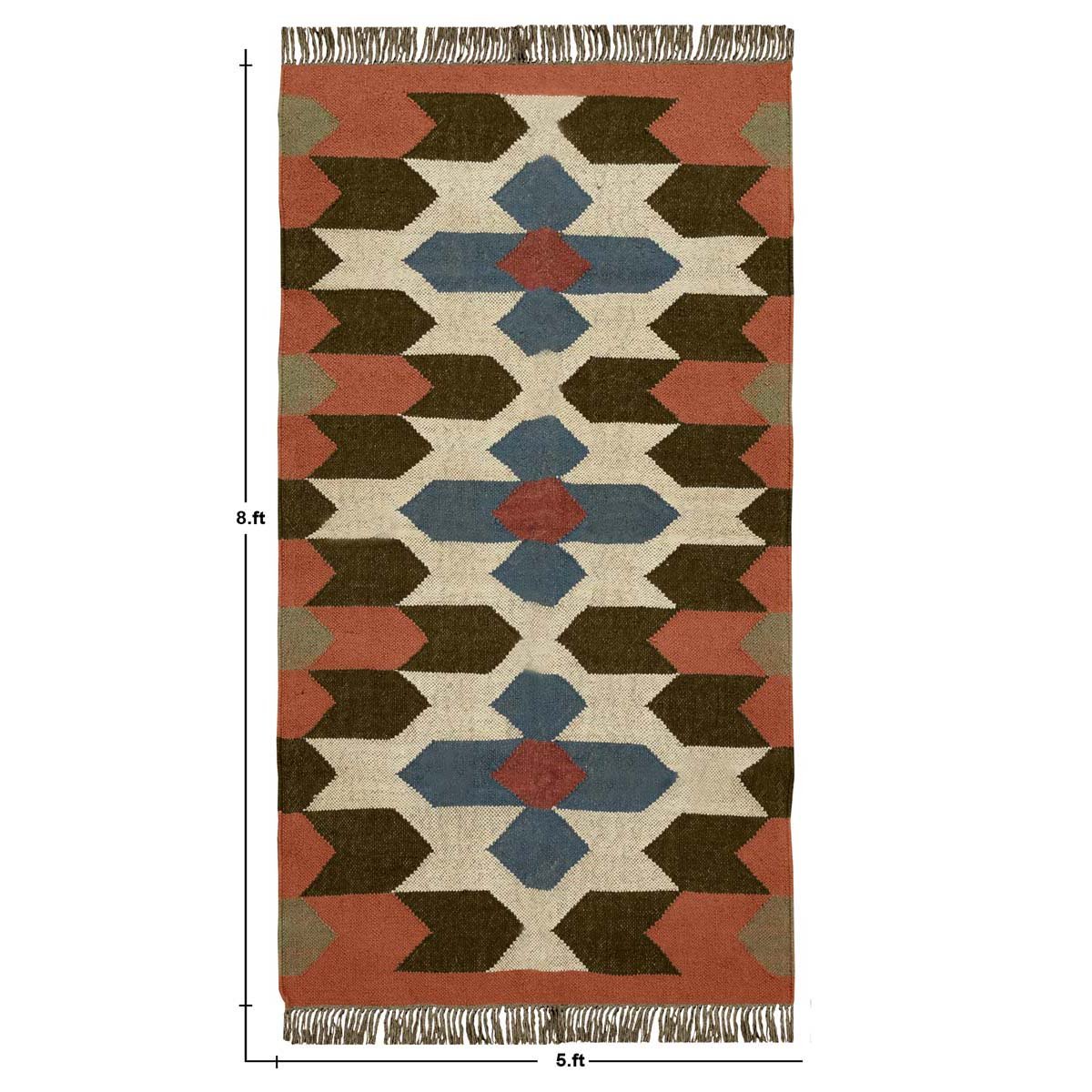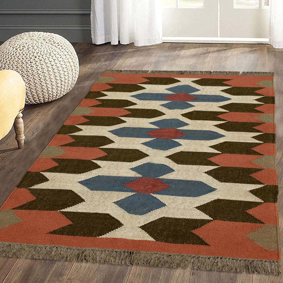 Geometric Wool Jute Kilim Handwoven Brown living Area Rug