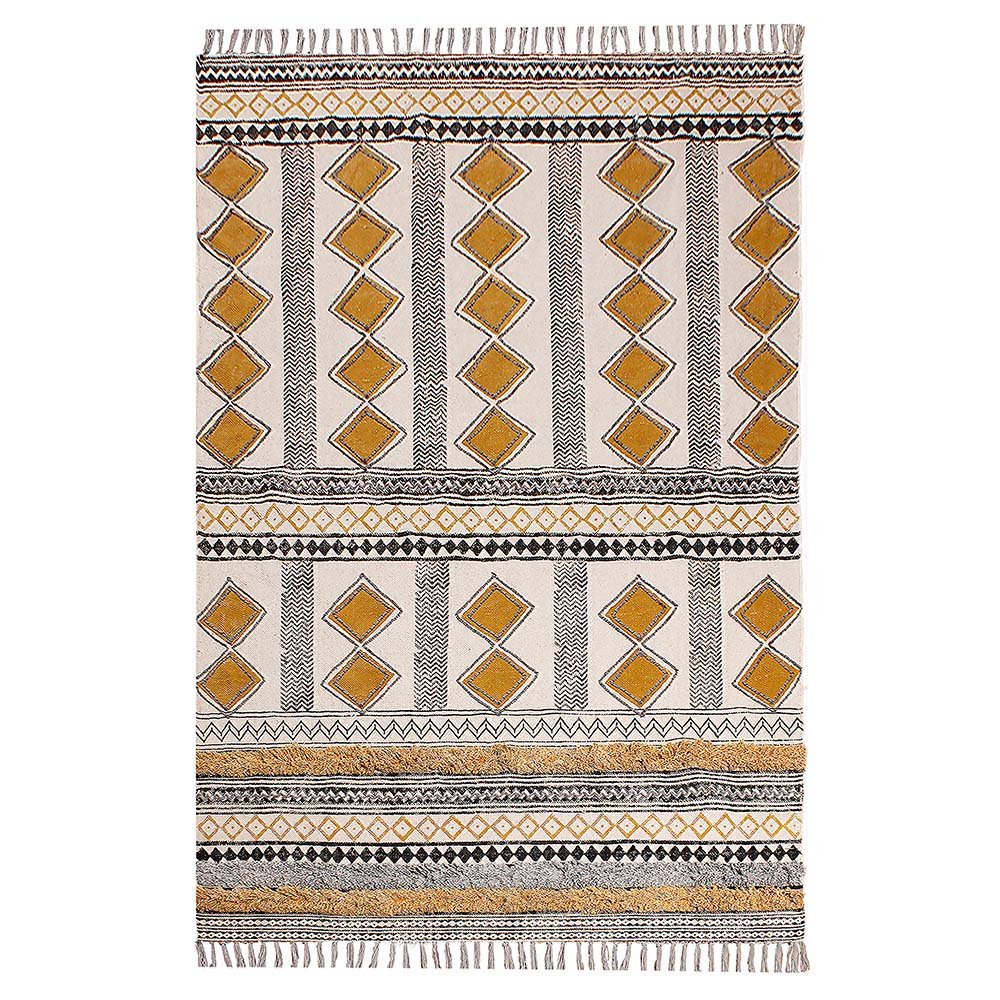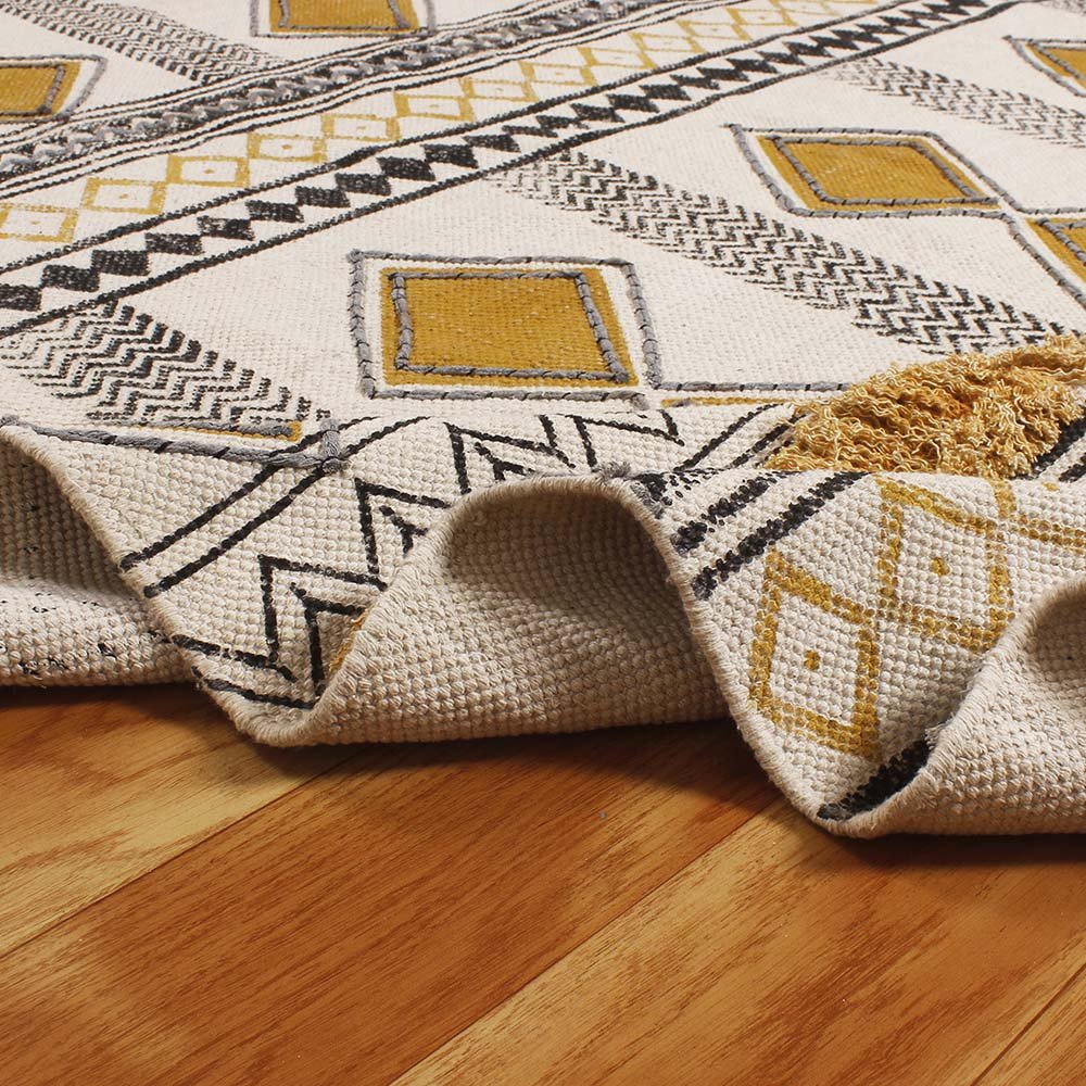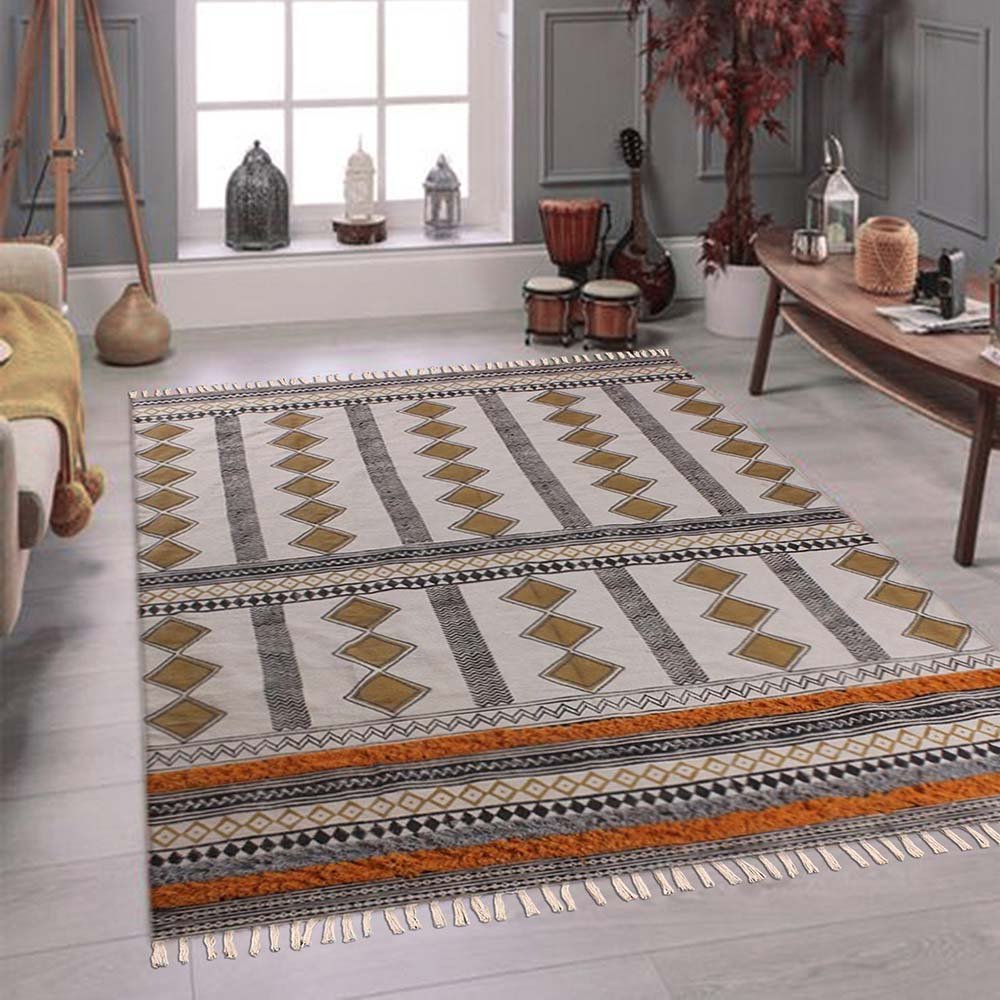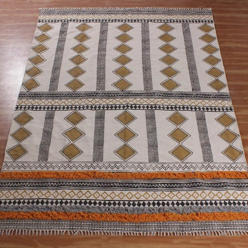 This is a beautiful handmade Cotton kilim rug weaved on Indian looms stamped with natural vegetable-dyes using hand-made wooden blocks achieving the perfection of block printing art of Jaipur. This is best suitable for your home office entrance, bedroom, living room, kids room, dining room, kitchen,outdoor patio, terrace, beach and garden.