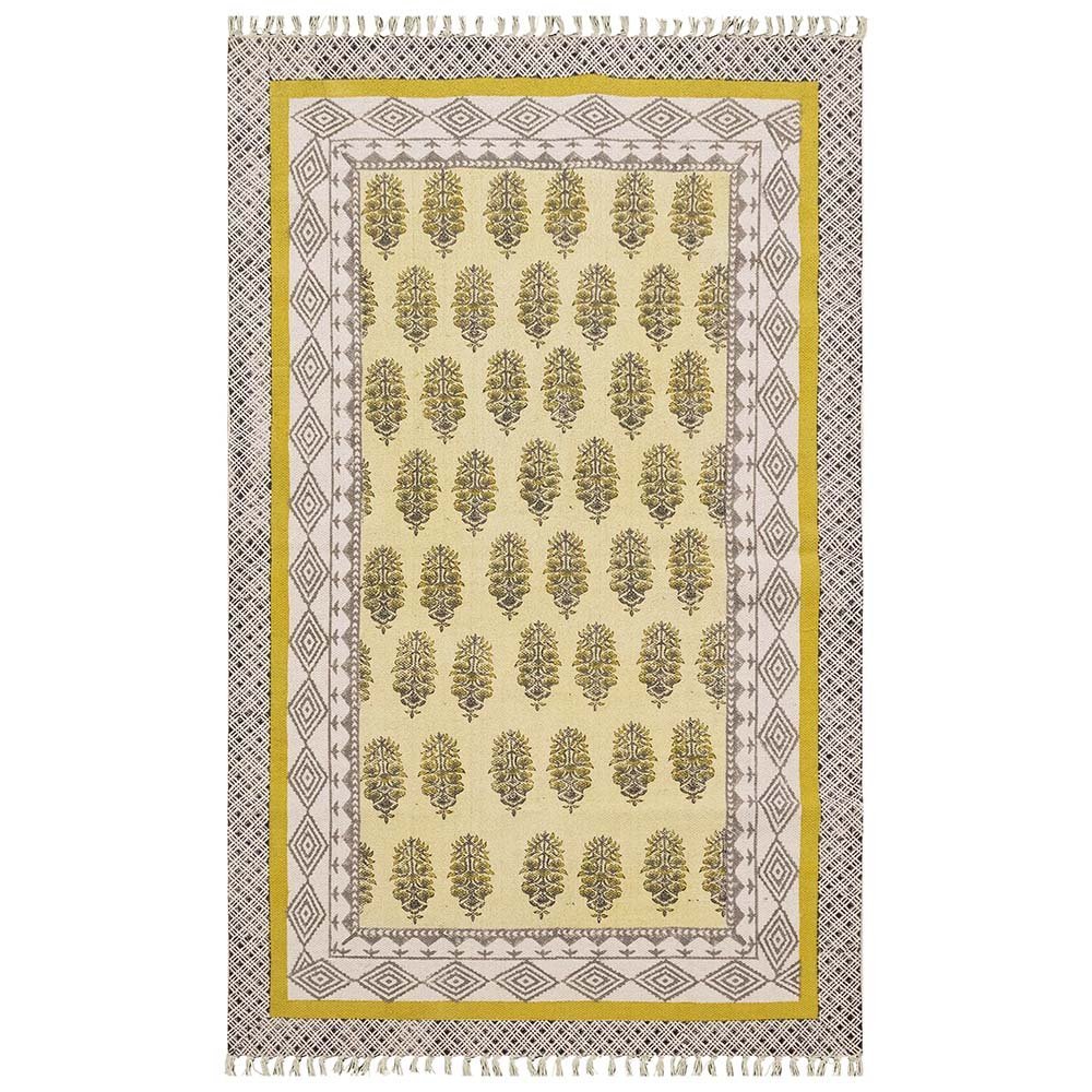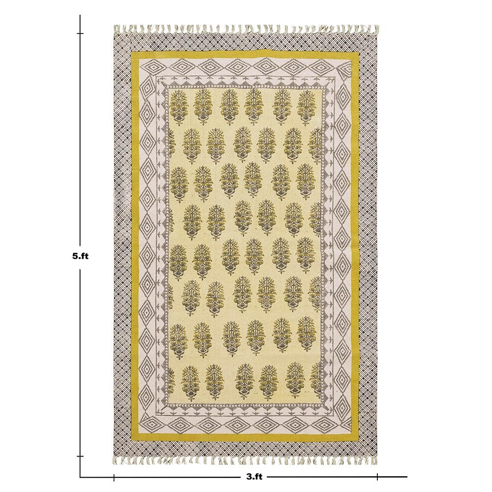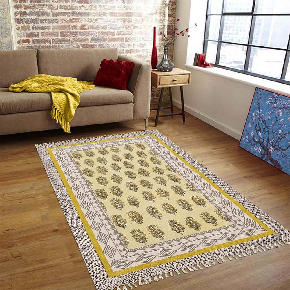 This is a beautiful handmade Cotton kilim rug weaved on Indian looms stamped with natural vegetable-dyes using hand-made wooden blocks achieving the perfection of block printing art of Jaipur. This is best suitable for your home office entrance, bedroom, living room, kids room, dining room, kitchen,outdoor patio, terrace, beach and garden.