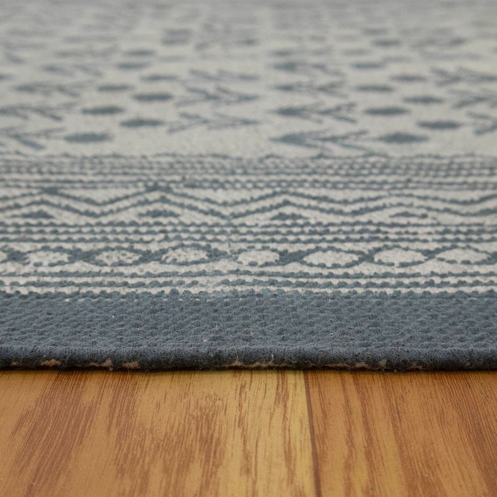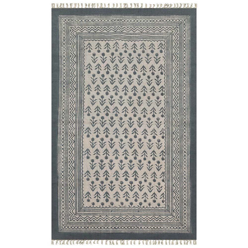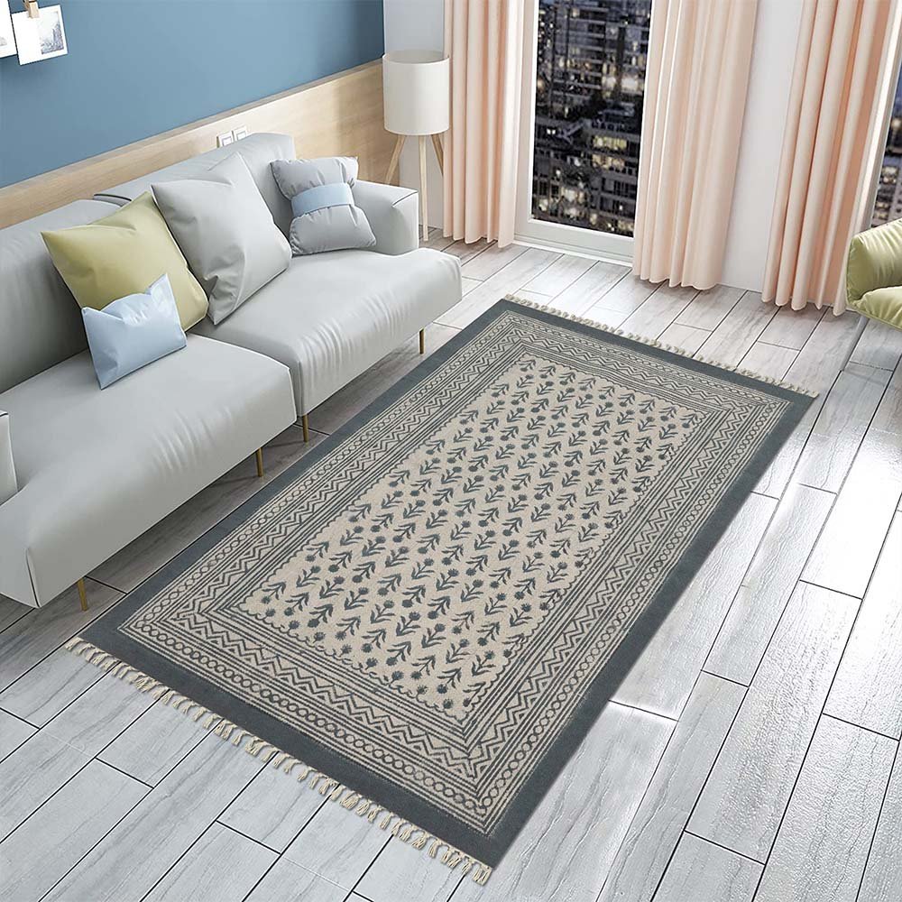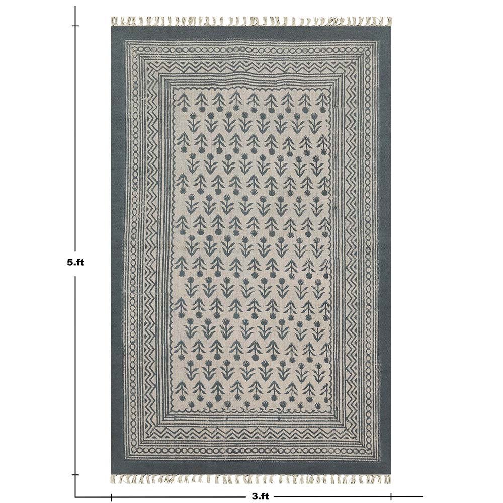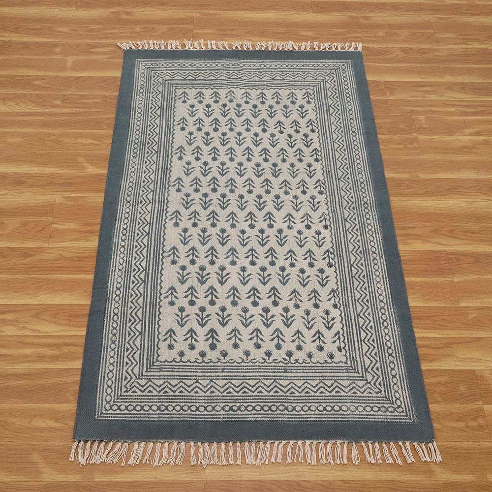 Gray Cotton Handmade Block Printed Rug