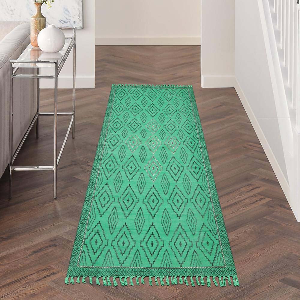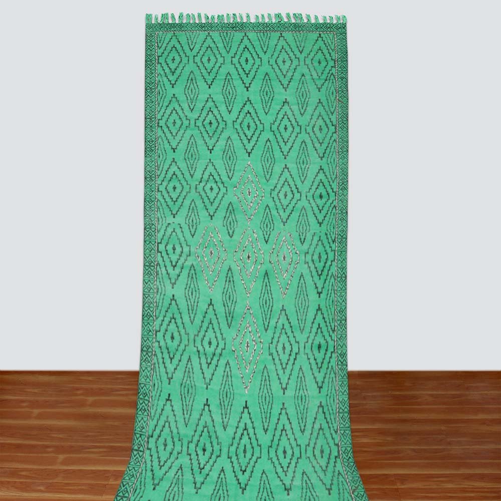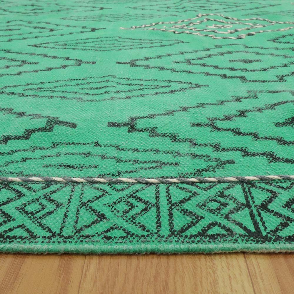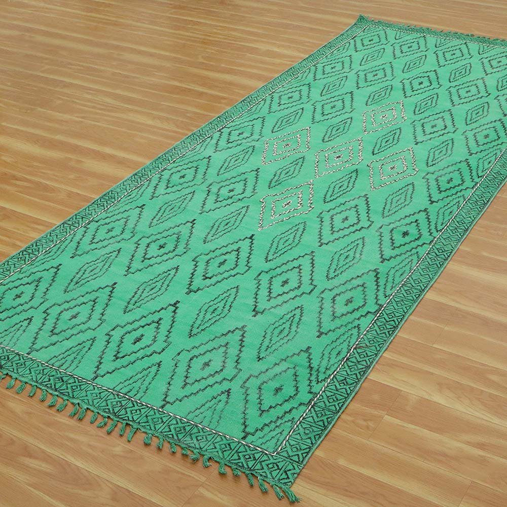 Thread Work Green Cotton Moroccan Rug