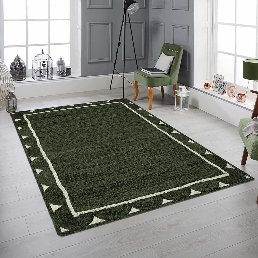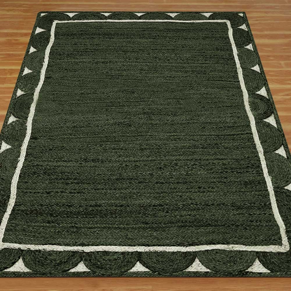 Green Jute Carpet Hand Braided Bedroom Area Rug