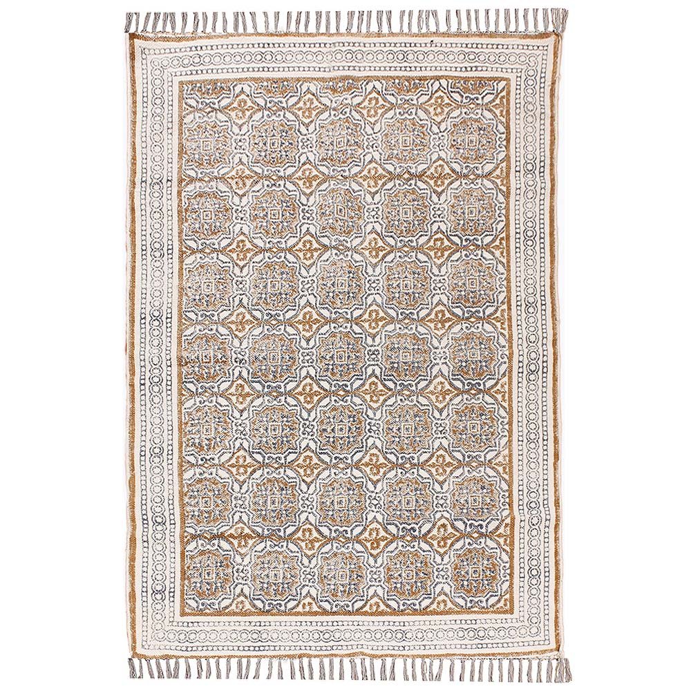 Hand Block Printed Brown Geometric Cotton Area Rug
