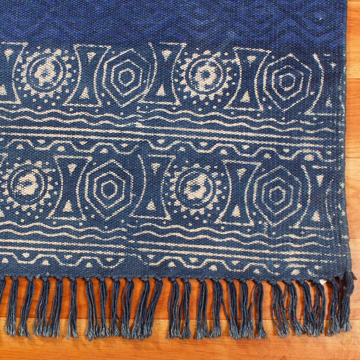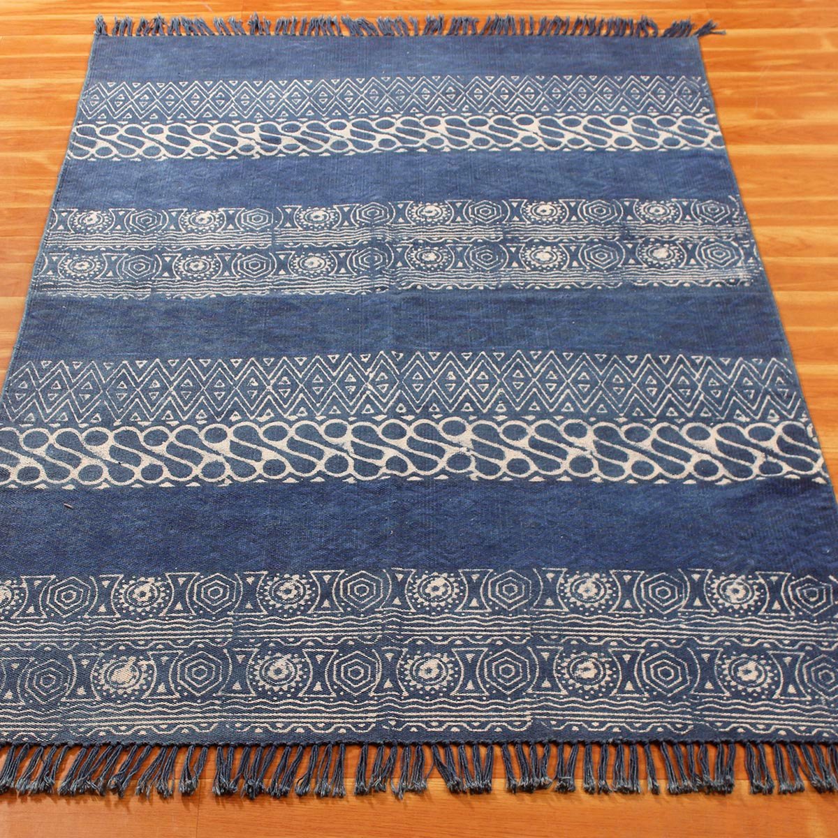 This is a beautiful handmade Cotton kilim rug weaved on Indian looms stamped with natural vegetable-dyes using hand-made wooden blocks achieving the perfection of block printing art of Jaipur. This is best suitable for your home office entrance, bedroom, living room, kids room, dining room, kitchen,outdoor patio, terrace, beach and garden.