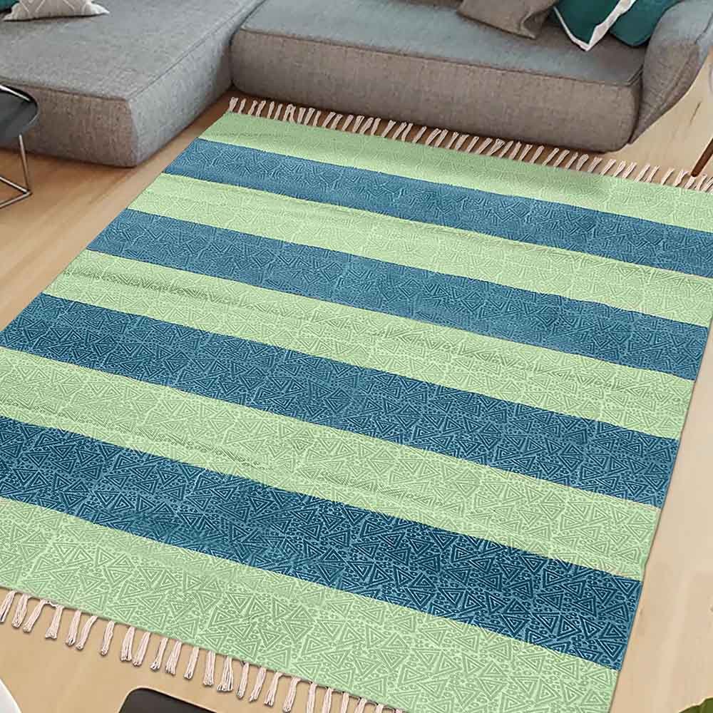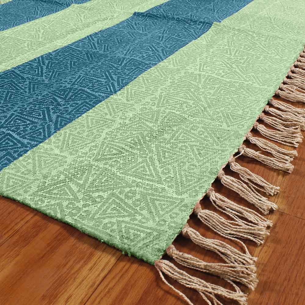 Be the first to review “Hand Block Printed Cotton Blue Green Area Rug”