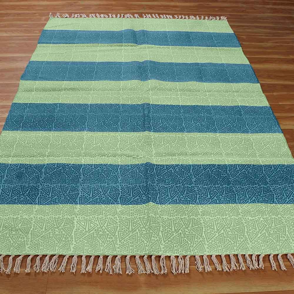 This is a beautiful handmade Cotton kilim rug weaved on Indian looms stamped with natural vegetable-dyes using hand-made wooden blocks achieving the perfection of block printing art of Jaipur. This is best suitable for your home office entrance, bedroom, living room, kids room, dining room, kitchen,outdoor patio, terrace, beach and garden.