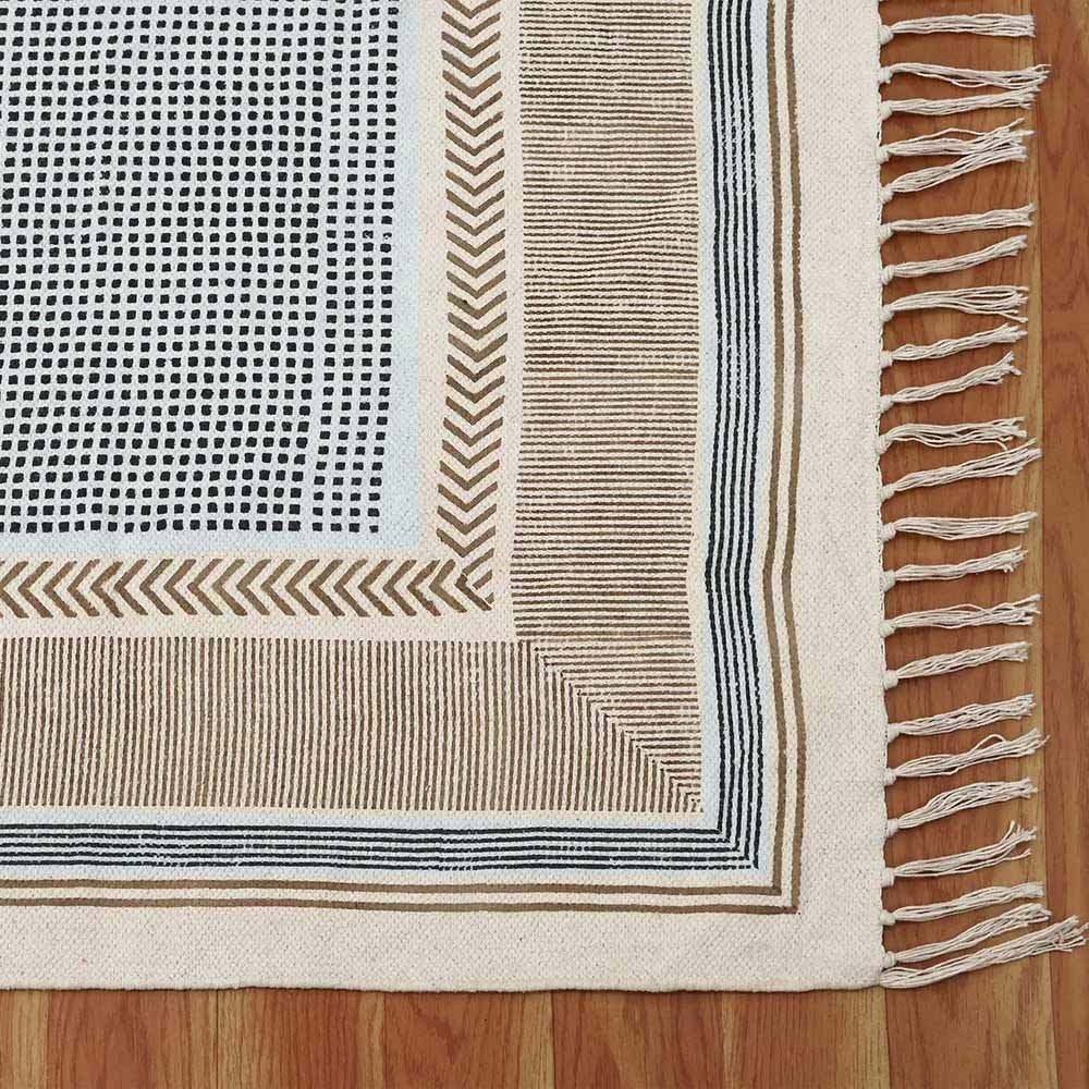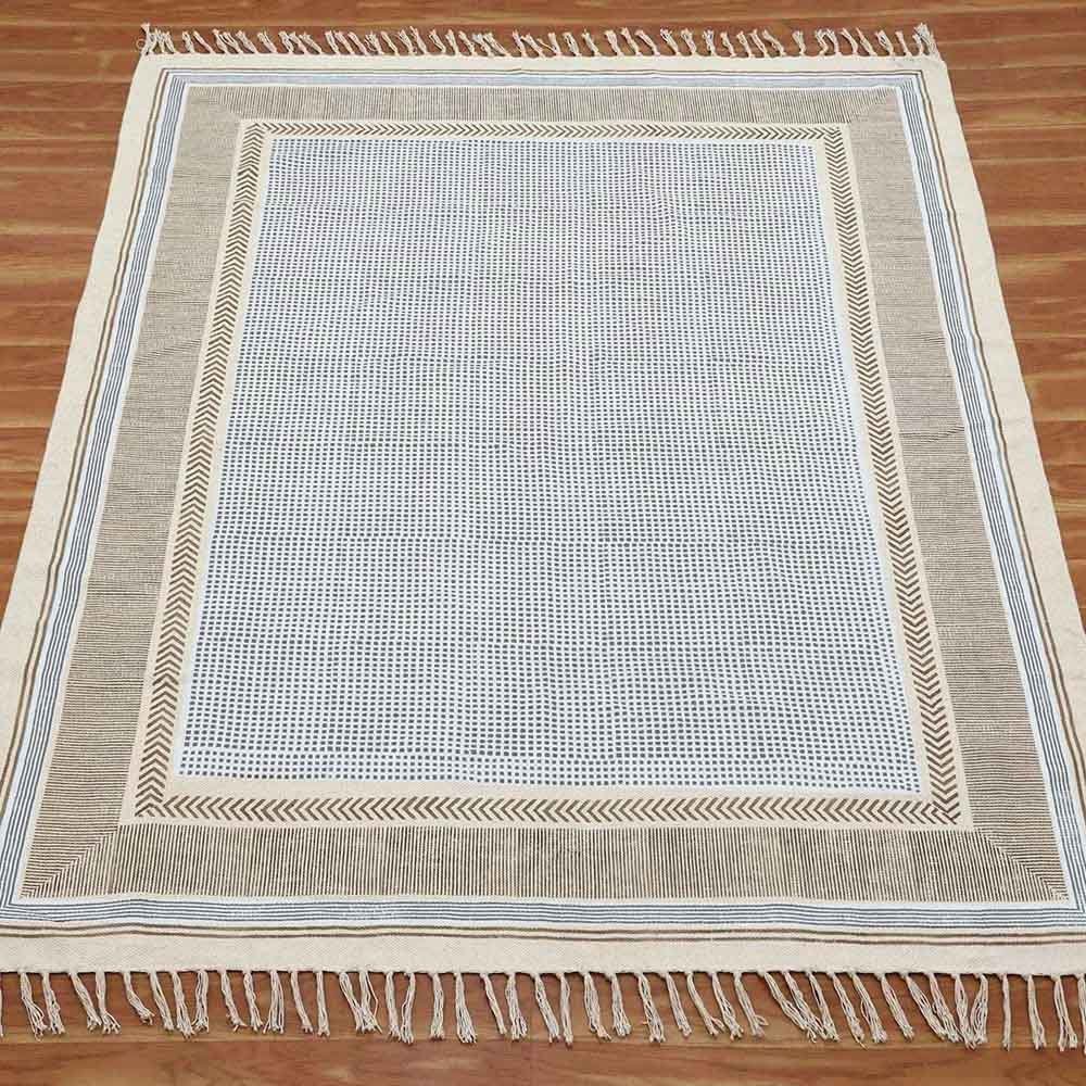 This is a beautiful handmade Cotton kilim rug weaved on Indian looms stamped with natural vegetable-dyes using hand-made wooden blocks achieving the perfection of block printing art of Jaipur. This is best suitable for your home office entrance, bedroom, living room, kids room, dining room, kitchen,outdoor patio, terrace, beach and garden.