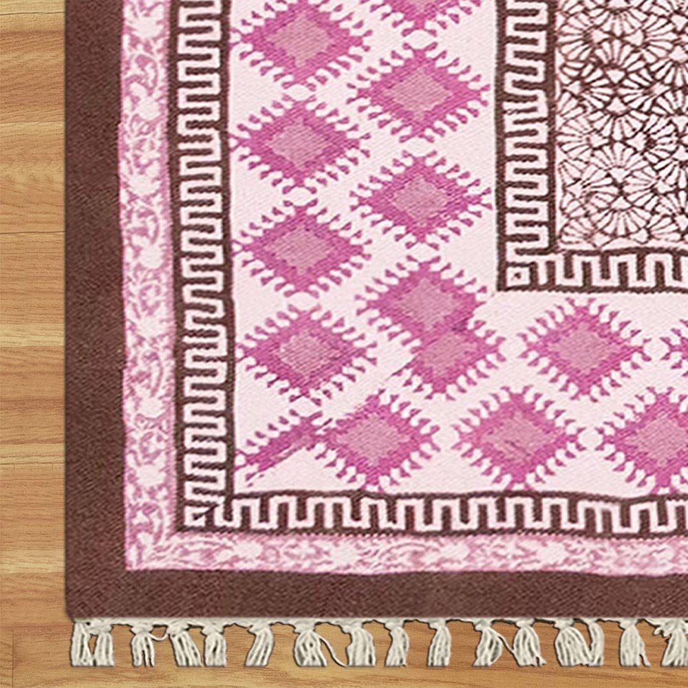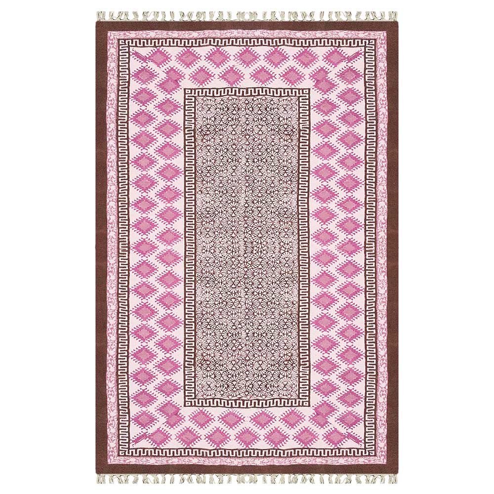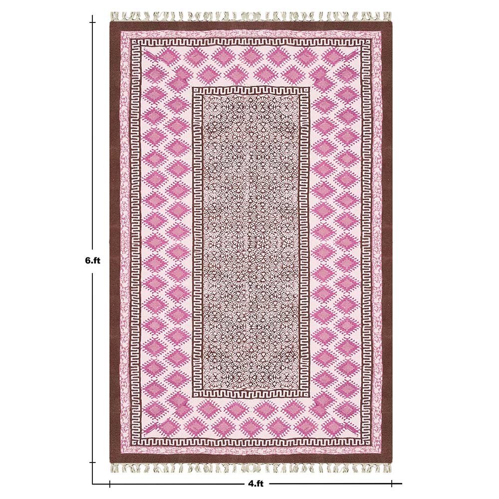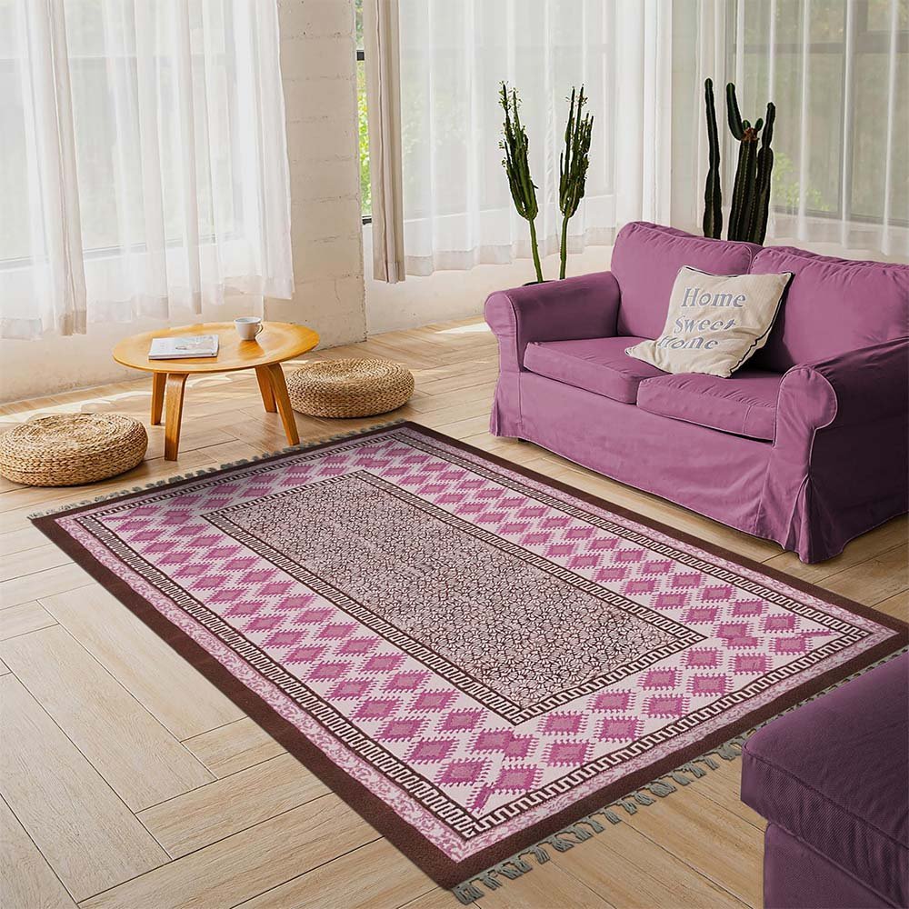 Hand Block Printed Cotton Pink Area Rug