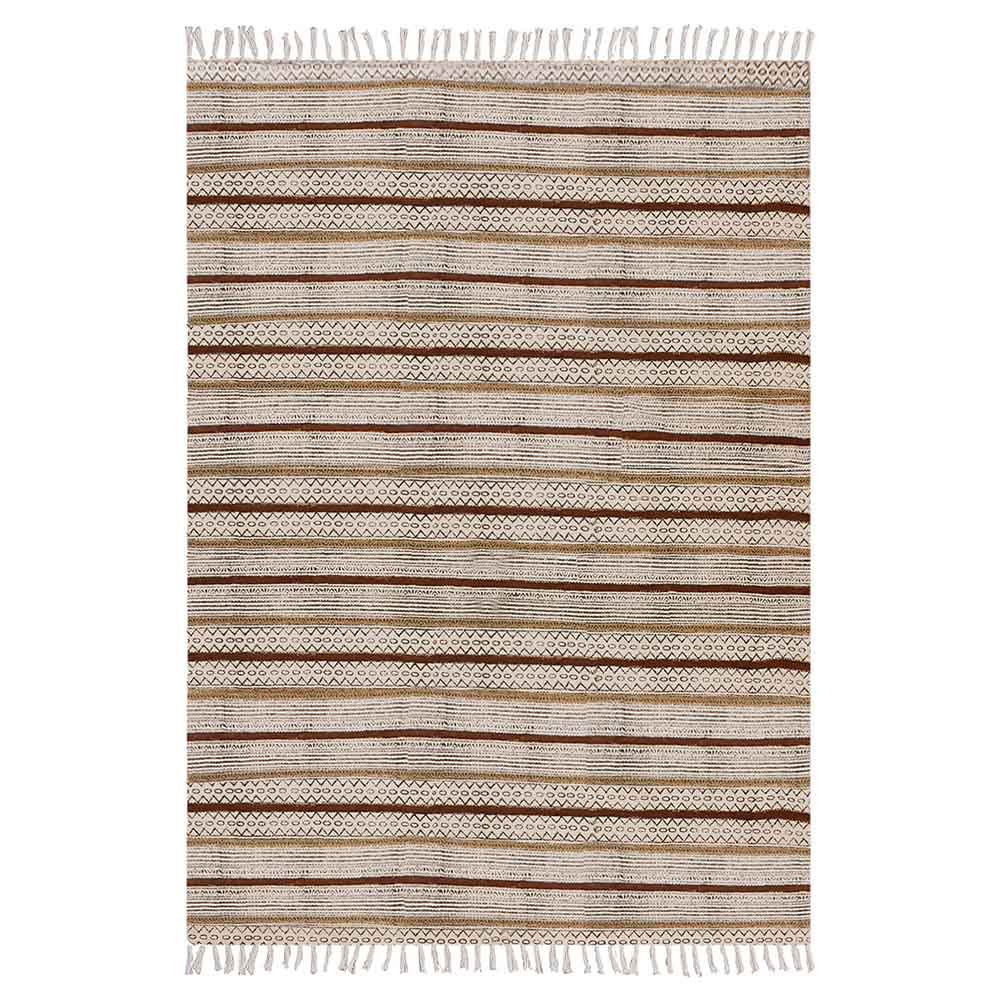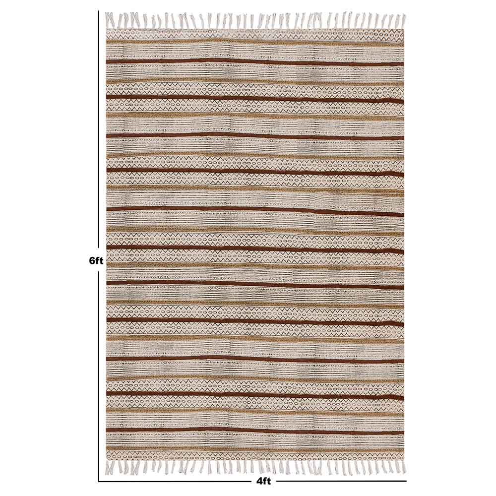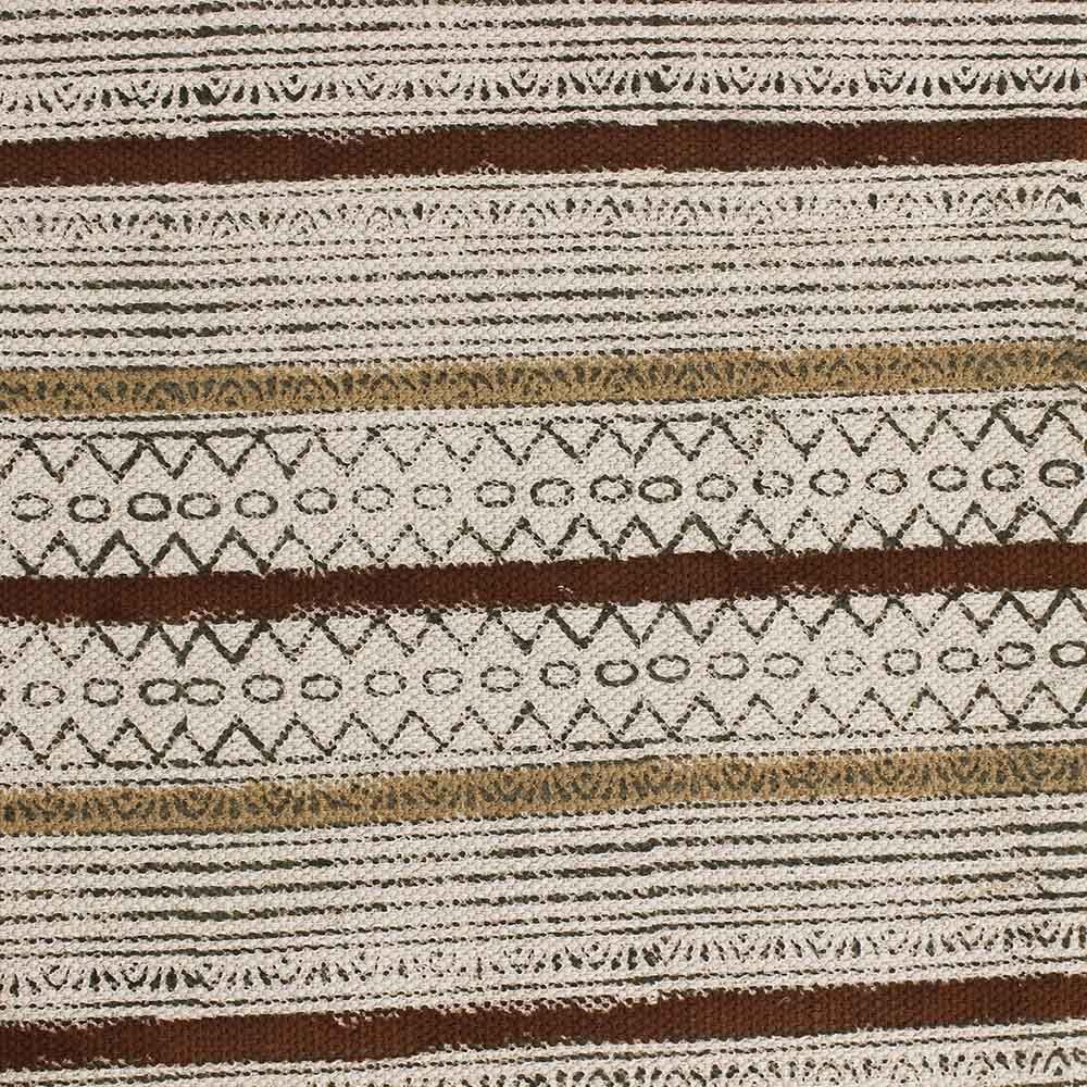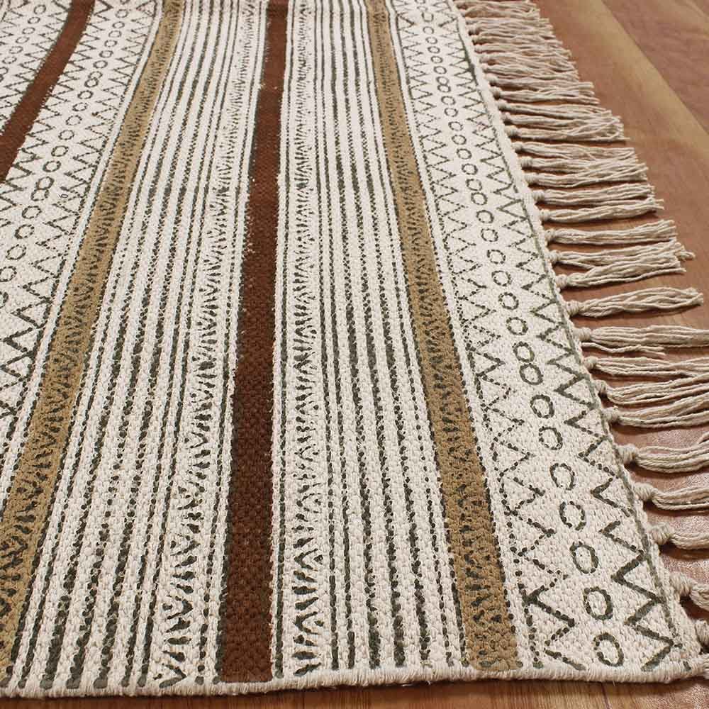 Hand Block Printed Cotton Striped Brown Rug