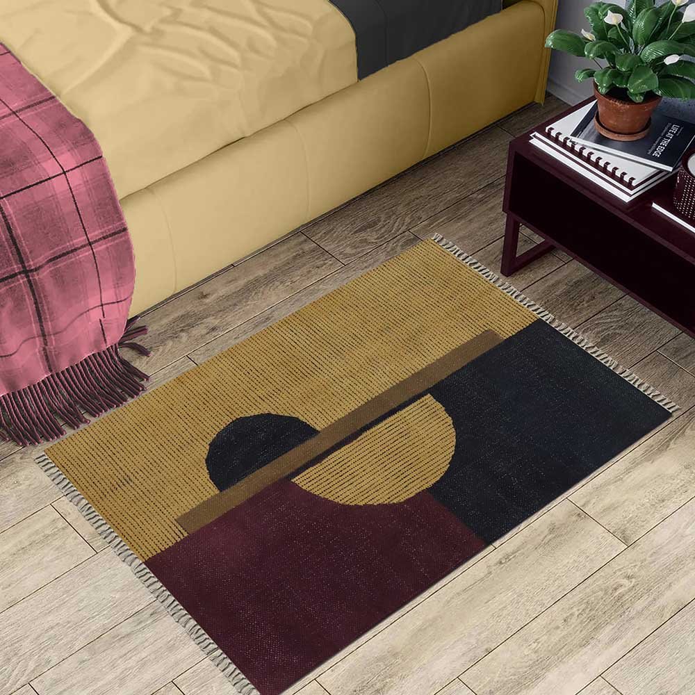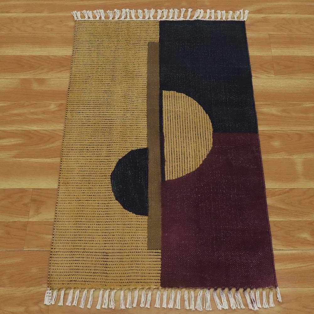 This is a beautiful handmade Cotton kilim rug weaved on Indian looms stamped with natural vegetable-dyes using hand-made wooden blocks achieving the perfection of block printing art of Jaipur. This is best suitable for your home office entrance, bedroom, living room, kids room, dining room, kitchen,outdoor patio, terrace, beach and garden.