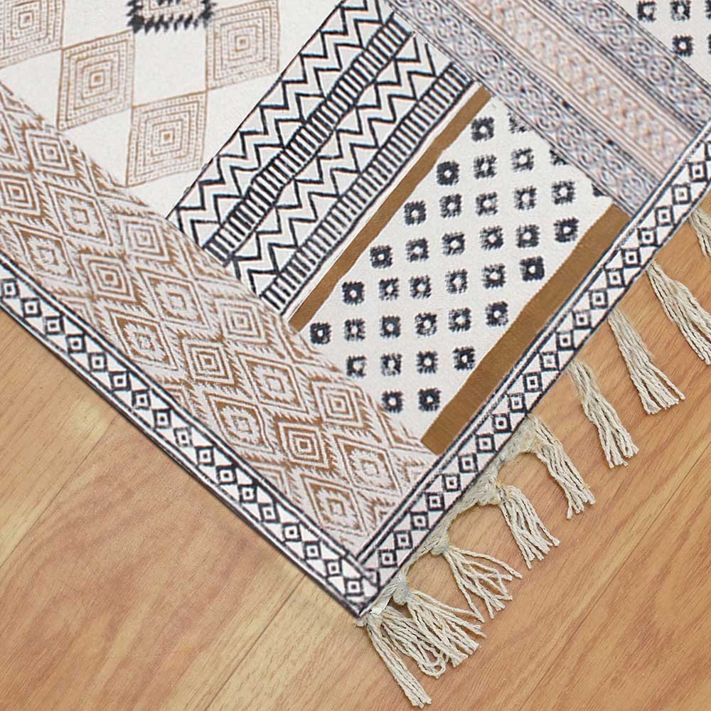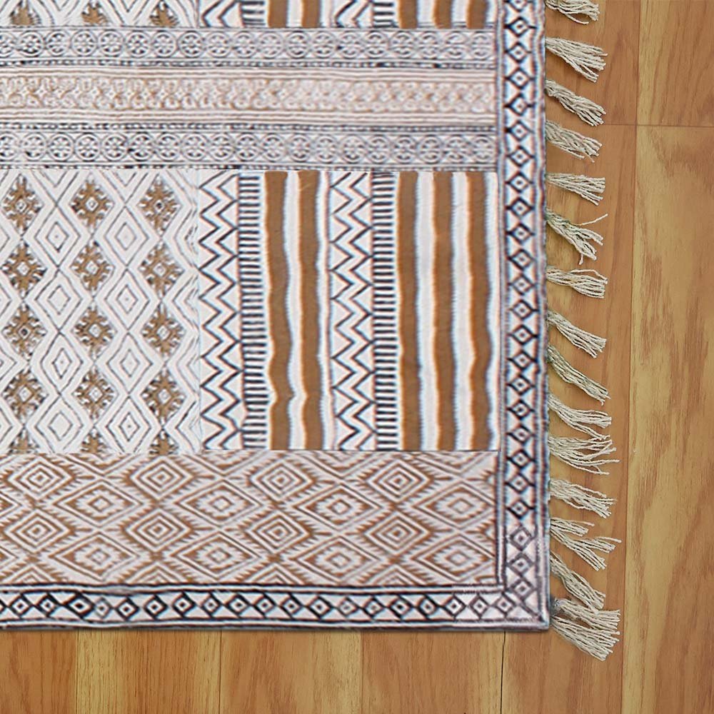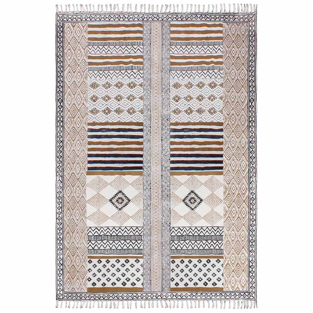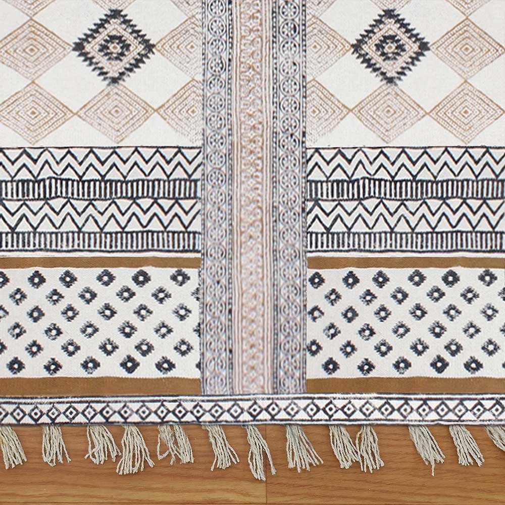 This is a beautiful handmade Cotton kilim rug weaved on Indian looms stamped with natural vegetable-dyes using hand-made wooden blocks achieving the perfection of block printing art of Jaipur. This is best suitable for your home office entrance, bedroom, living room, kids room, dining room, kitchen,outdoor patio, terrace, beach and garden.