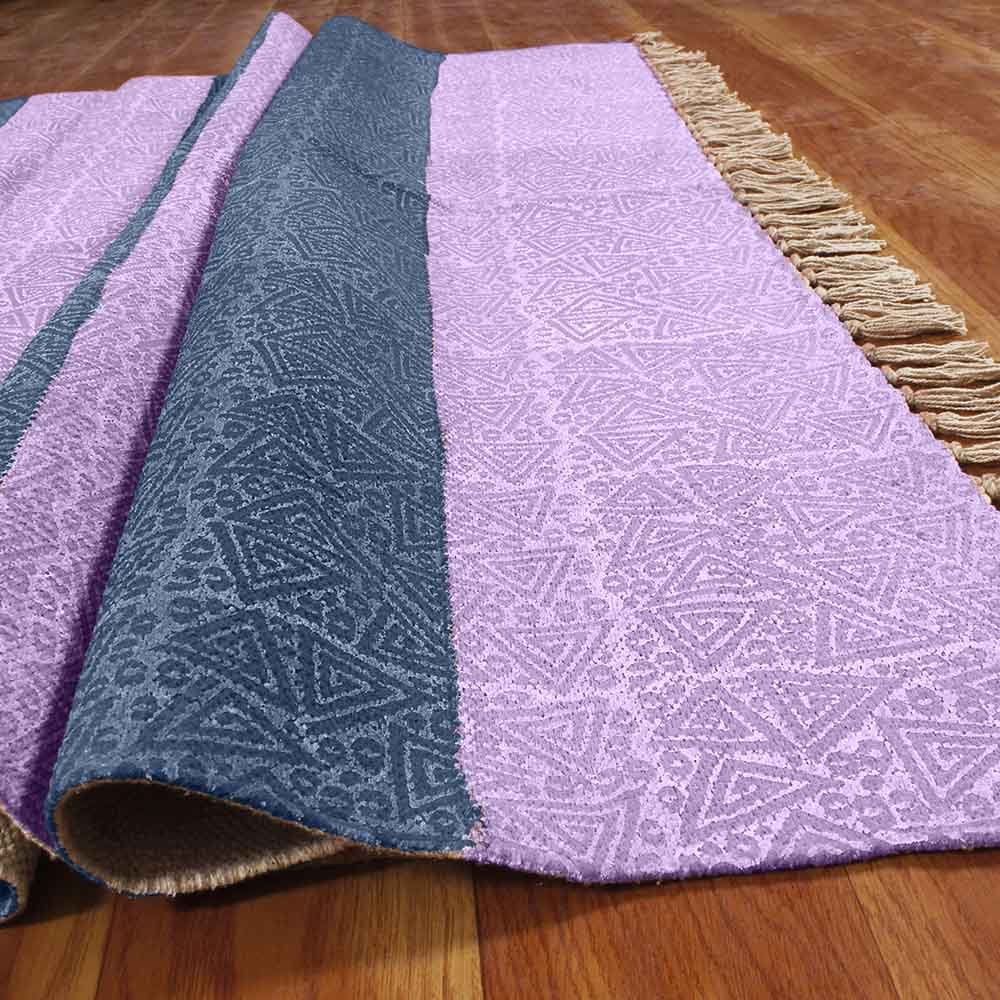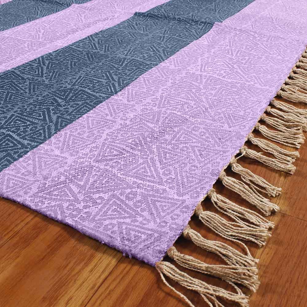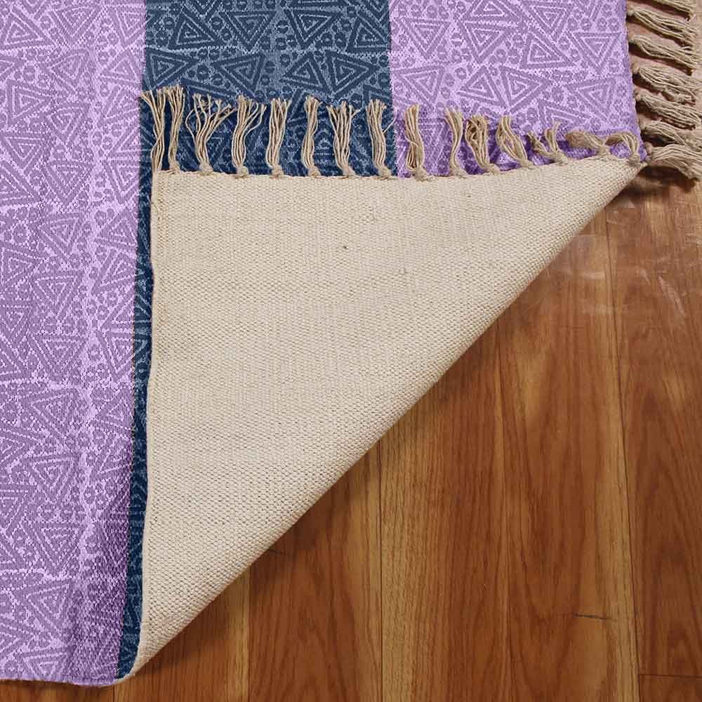 Hand Block Printed Purple Cotton Rug