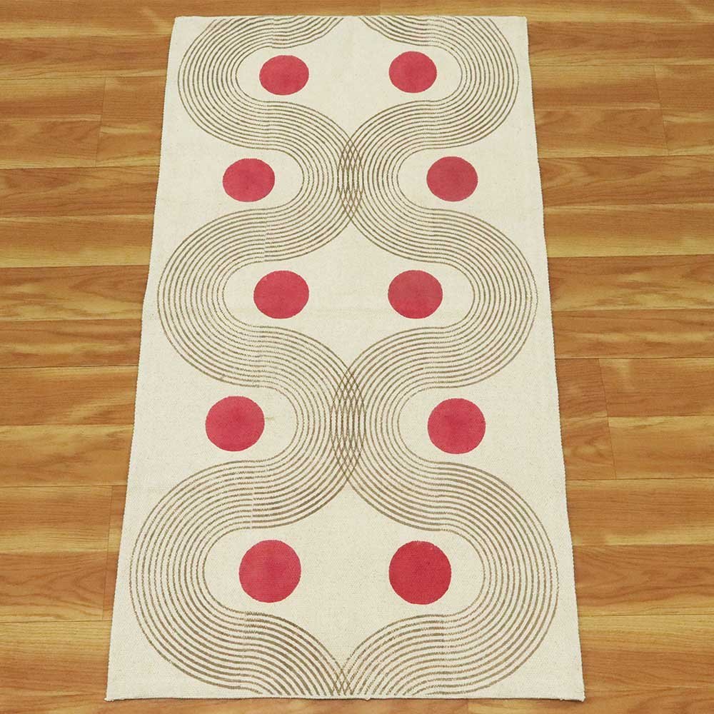 This is a beautiful handmade Cotton kilim rug weaved on Indian looms stamped with natural vegetable-dyes using hand-made wooden blocks achieving the perfection of block printing art of Jaipur. This is best suitable for your home office entrance, bedroom, living room, kids room, dining room, kitchen,outdoor patio, terrace, beach and garden.