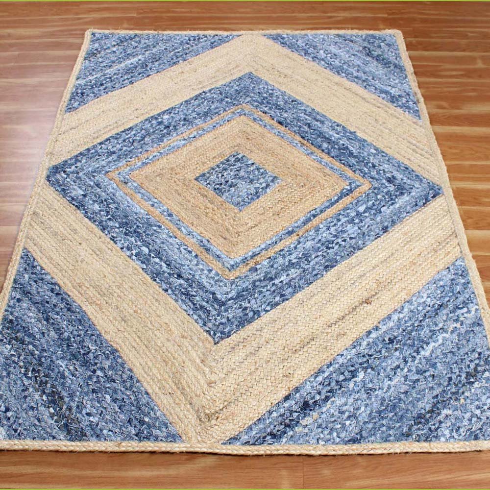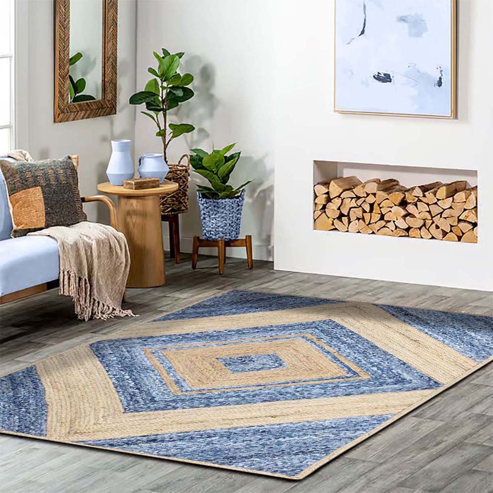 Be the first to review “Blue Handmade Geometric Square Jute Rug”