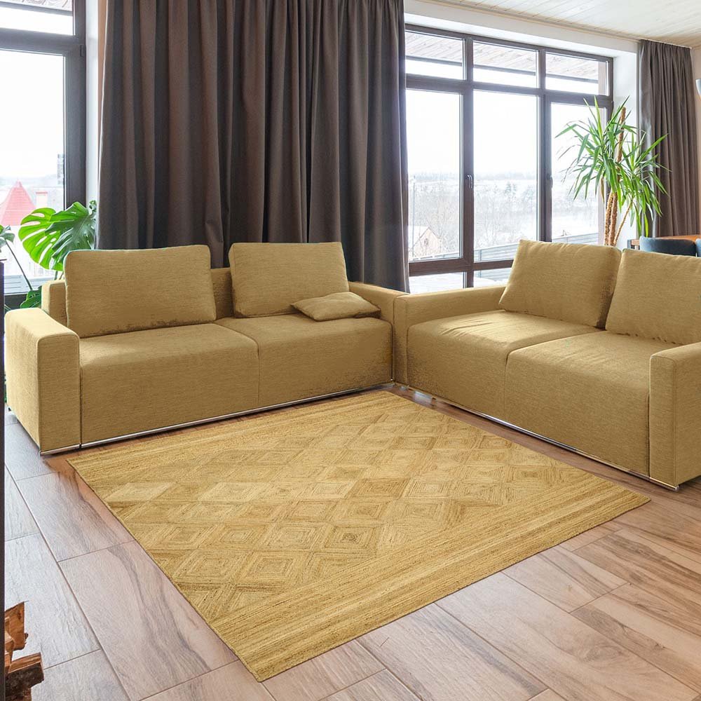 The rug is an outcome of a 100% handmade process using natural jute yarns that are 100% eco-friendly. The second most recognized cultivated vegetable Fiber after cotton is this natural Fiber. As such, the manufacturing process of this beautiful jute rug is a 100% handmade and 100% eco-environment-friendly process beginning from the cultivating of natural jute Fiber to hand weaving these jute yarns.