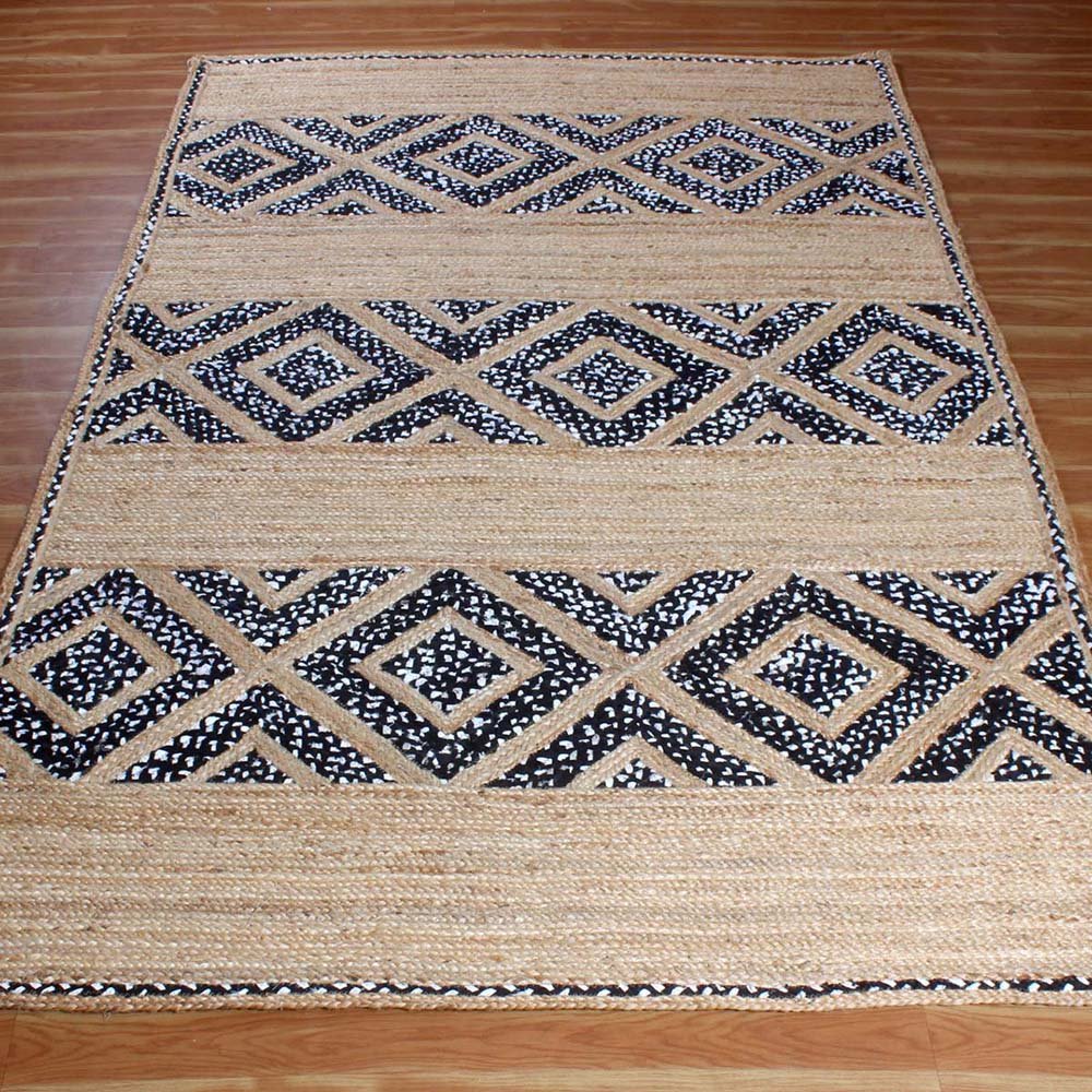 Hand Braided Beige Black Cotton Jute Rug