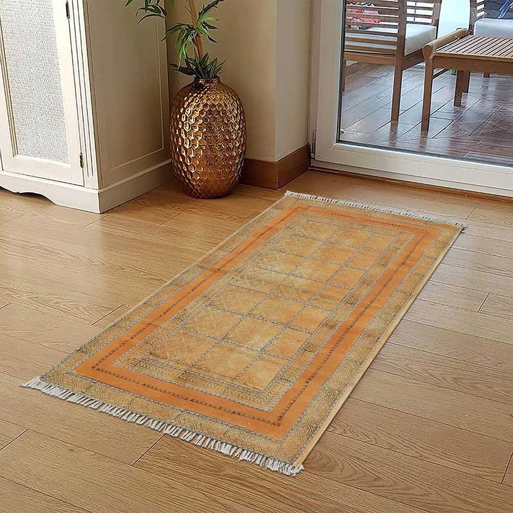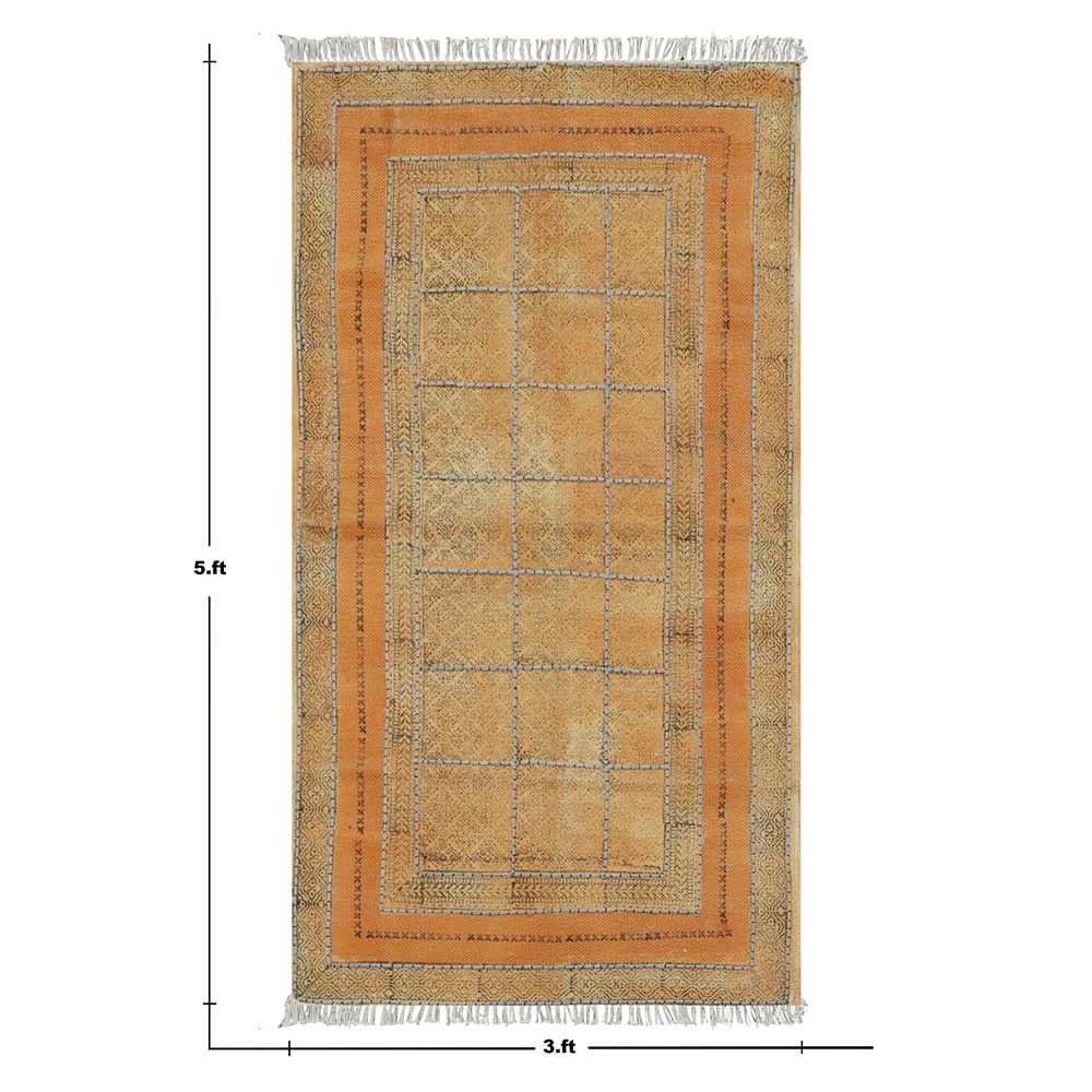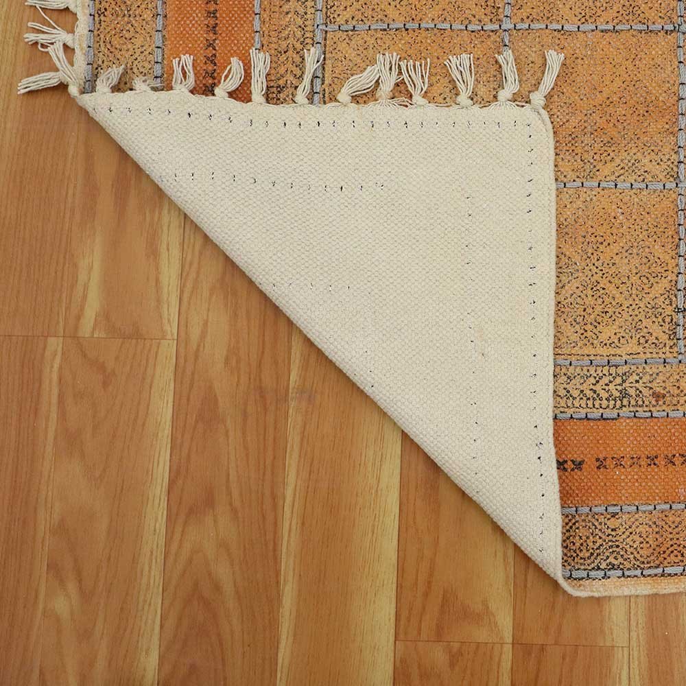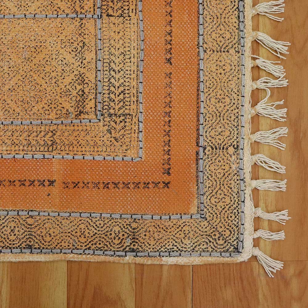 This is a beautiful handmade Cotton kilim rug weaved on Indian looms stamped with natural vegetable-dyes using hand-made wooden blocks achieving the perfection of block printing art of Jaipur. This is best suitable for your home office entrance, bedroom, living room, kids room, dining room, kitchen,outdoor patio, terrace, beach and garden.