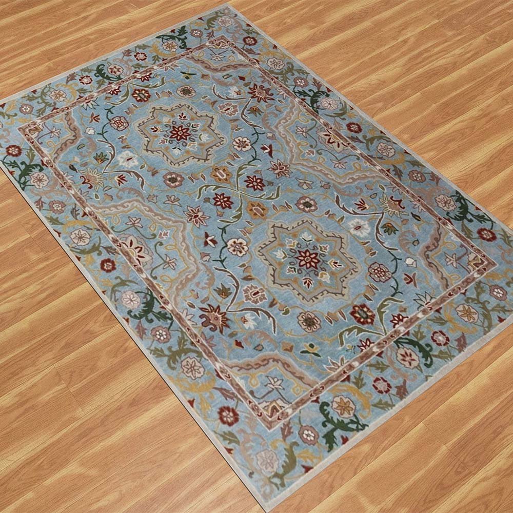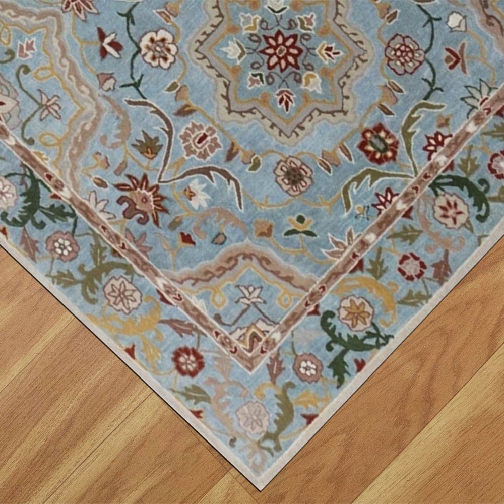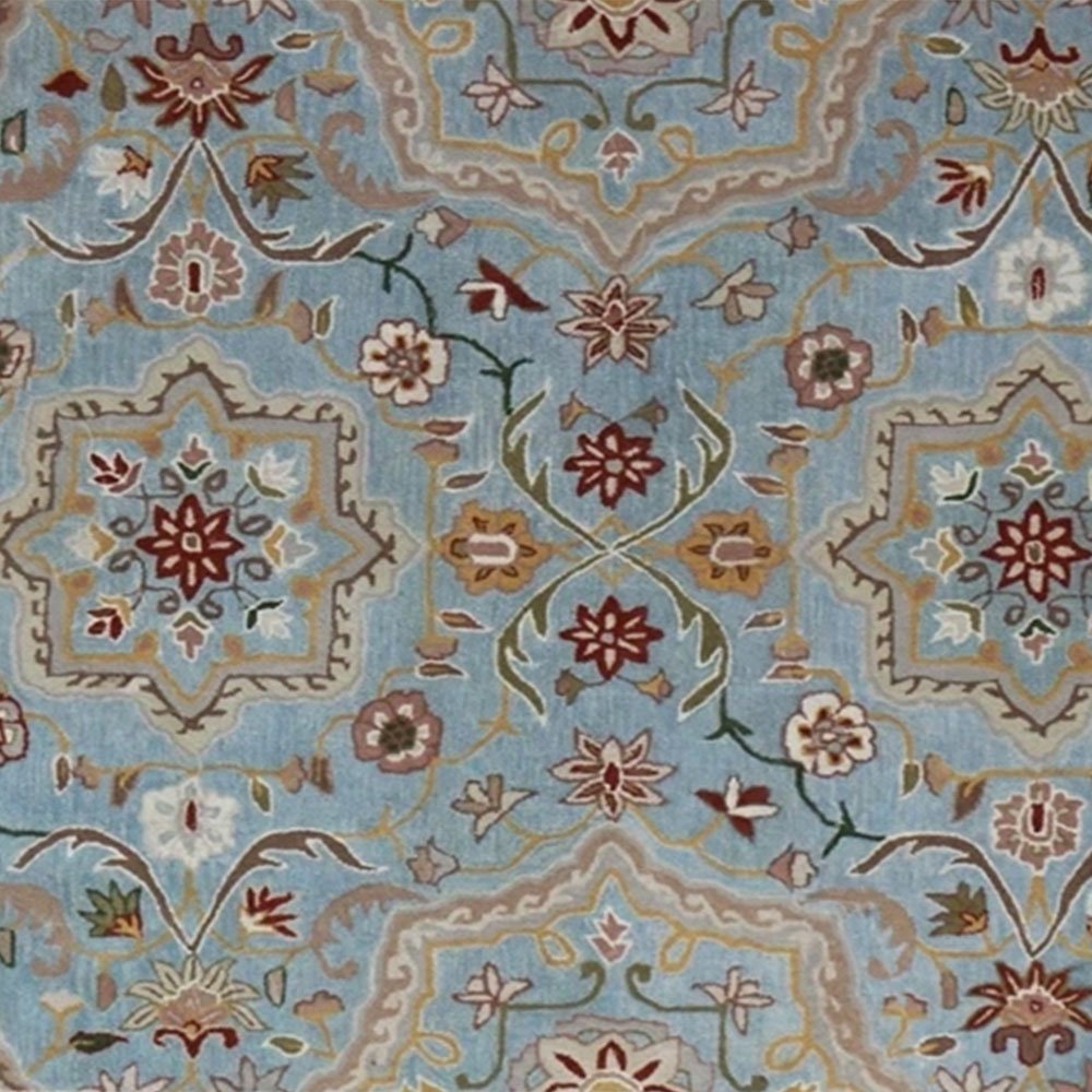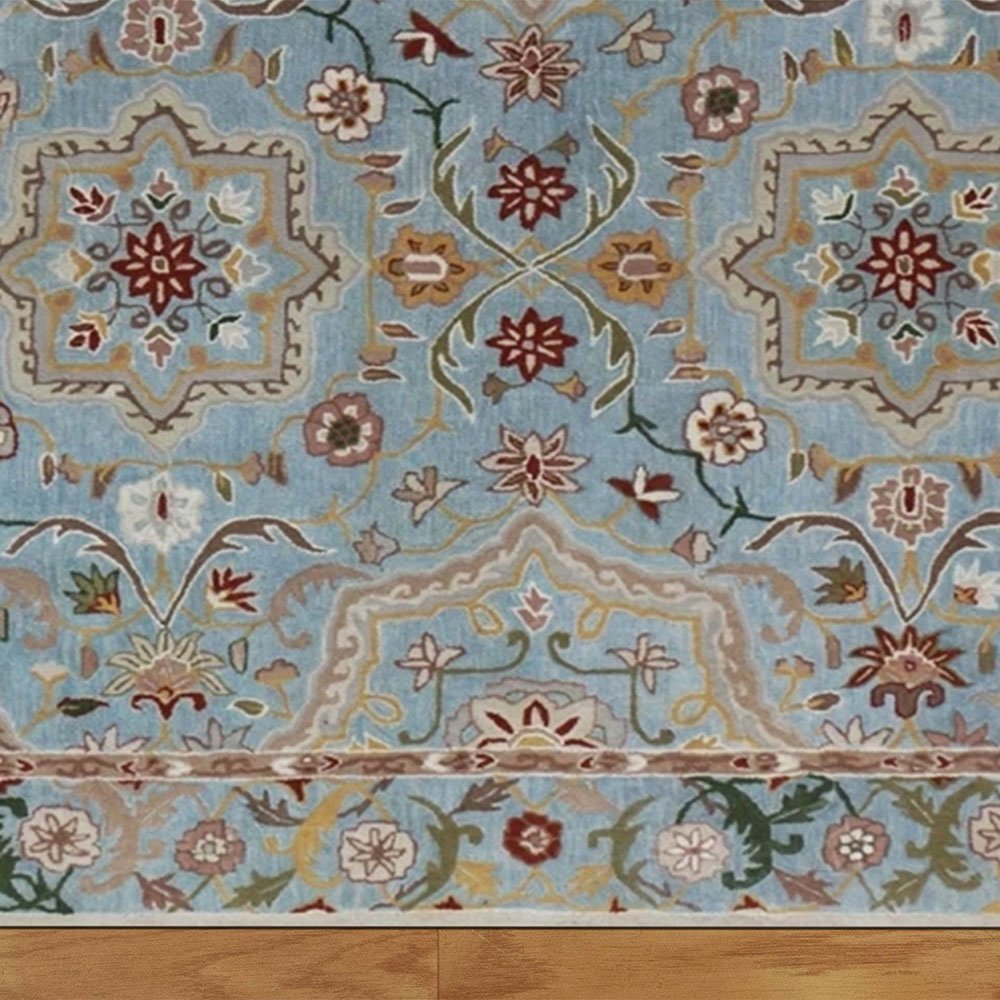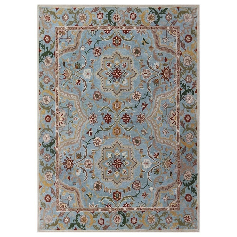 Hand Tufted Sky Blue Floral Wool Rug