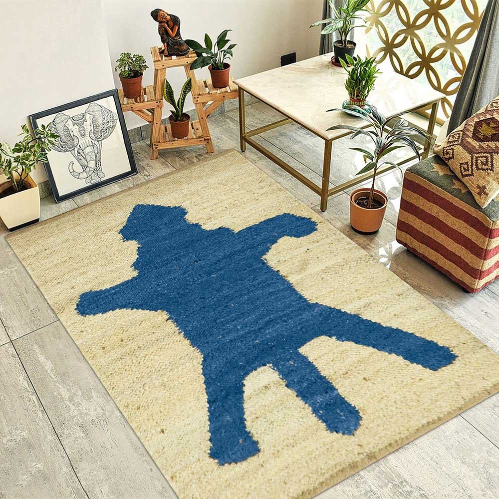 Hand Woven Blue Bedroom Jute Area Rug