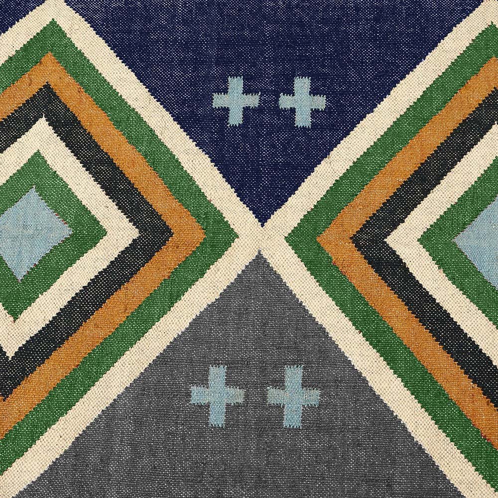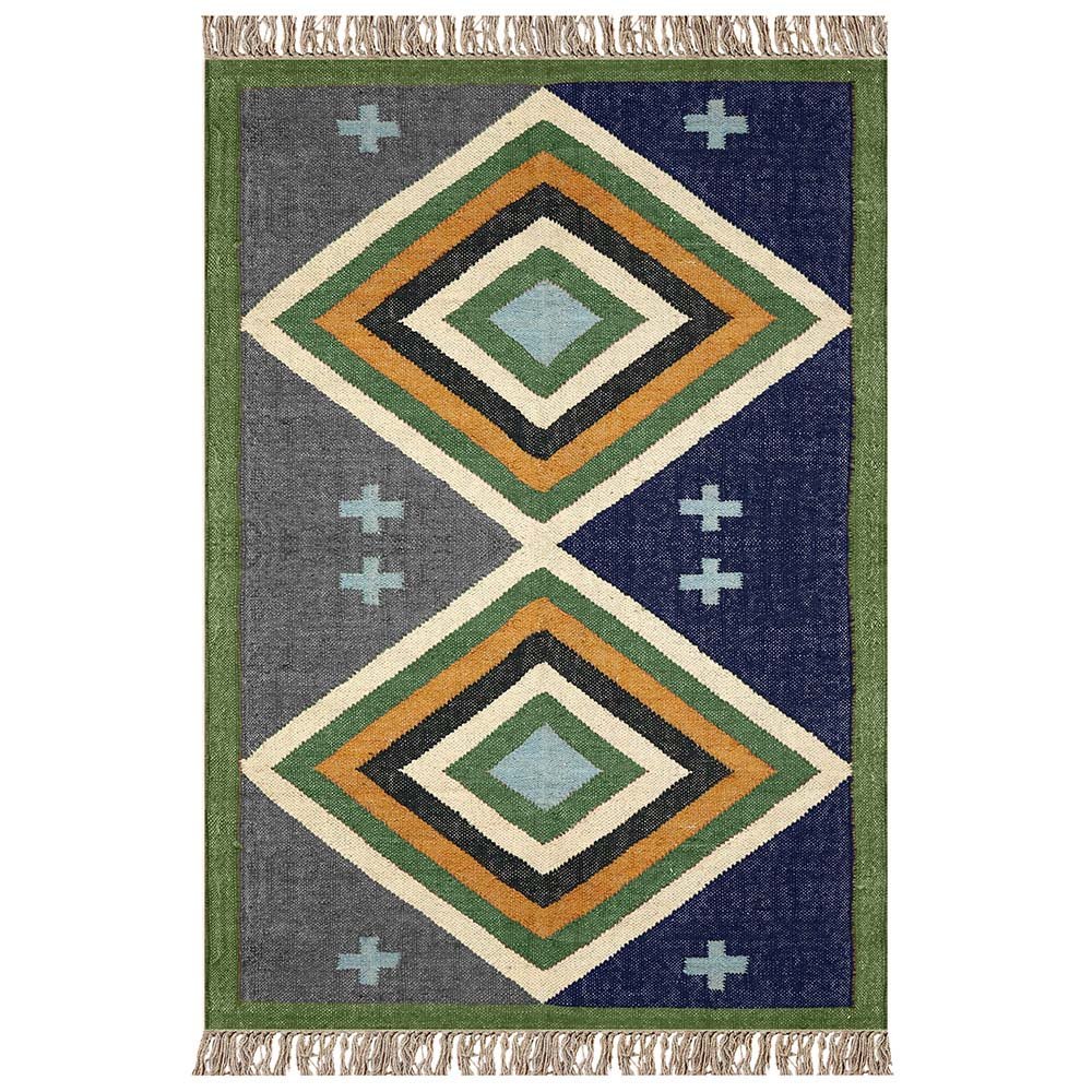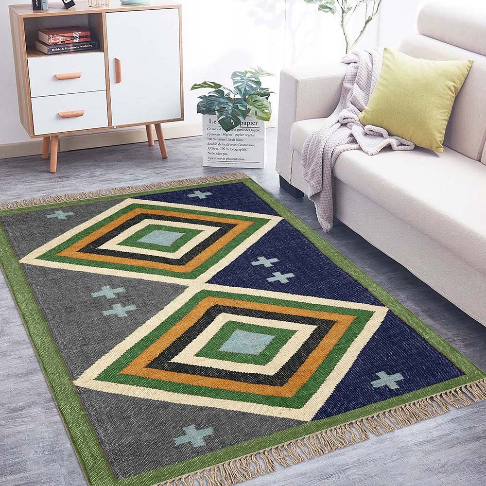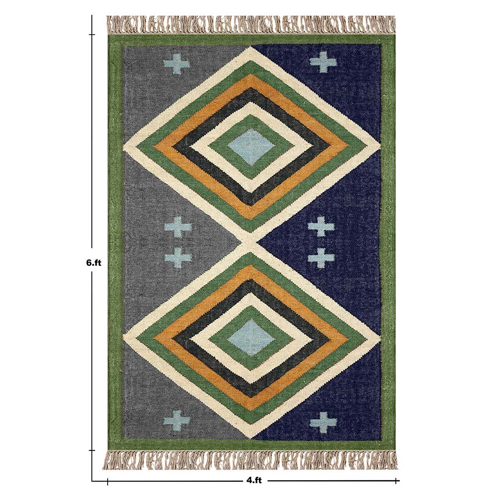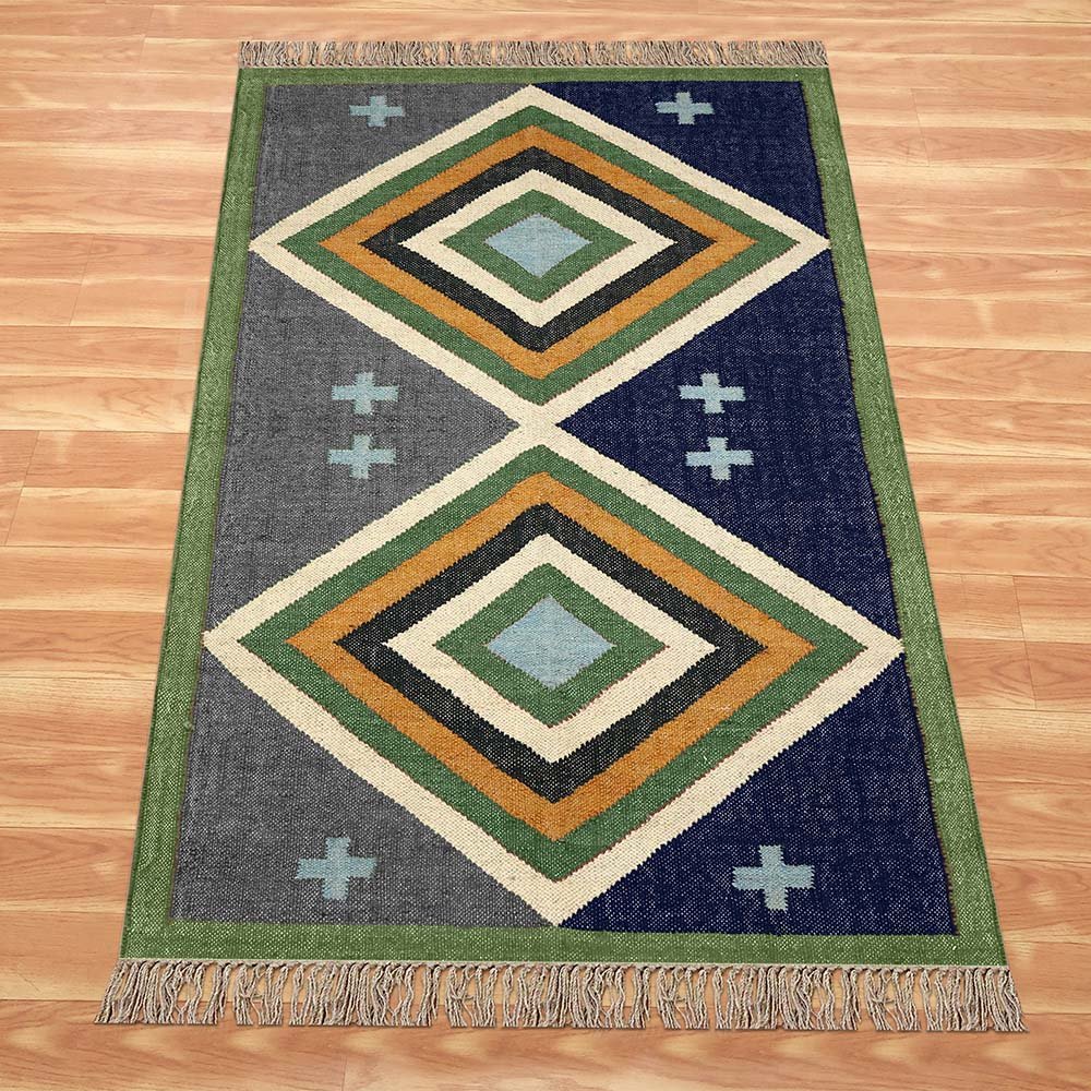 Be the first to review “Hand Woven Green Blue Geometric Wool Jute Rug”