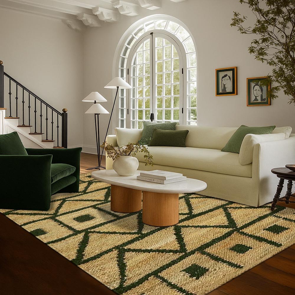 Hand Woven Green Jute Rug Perfect for Home Decor