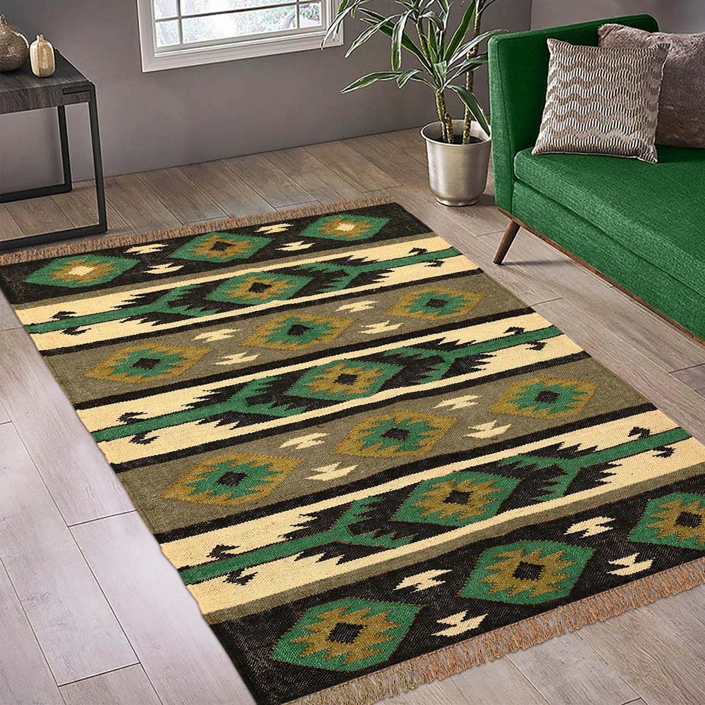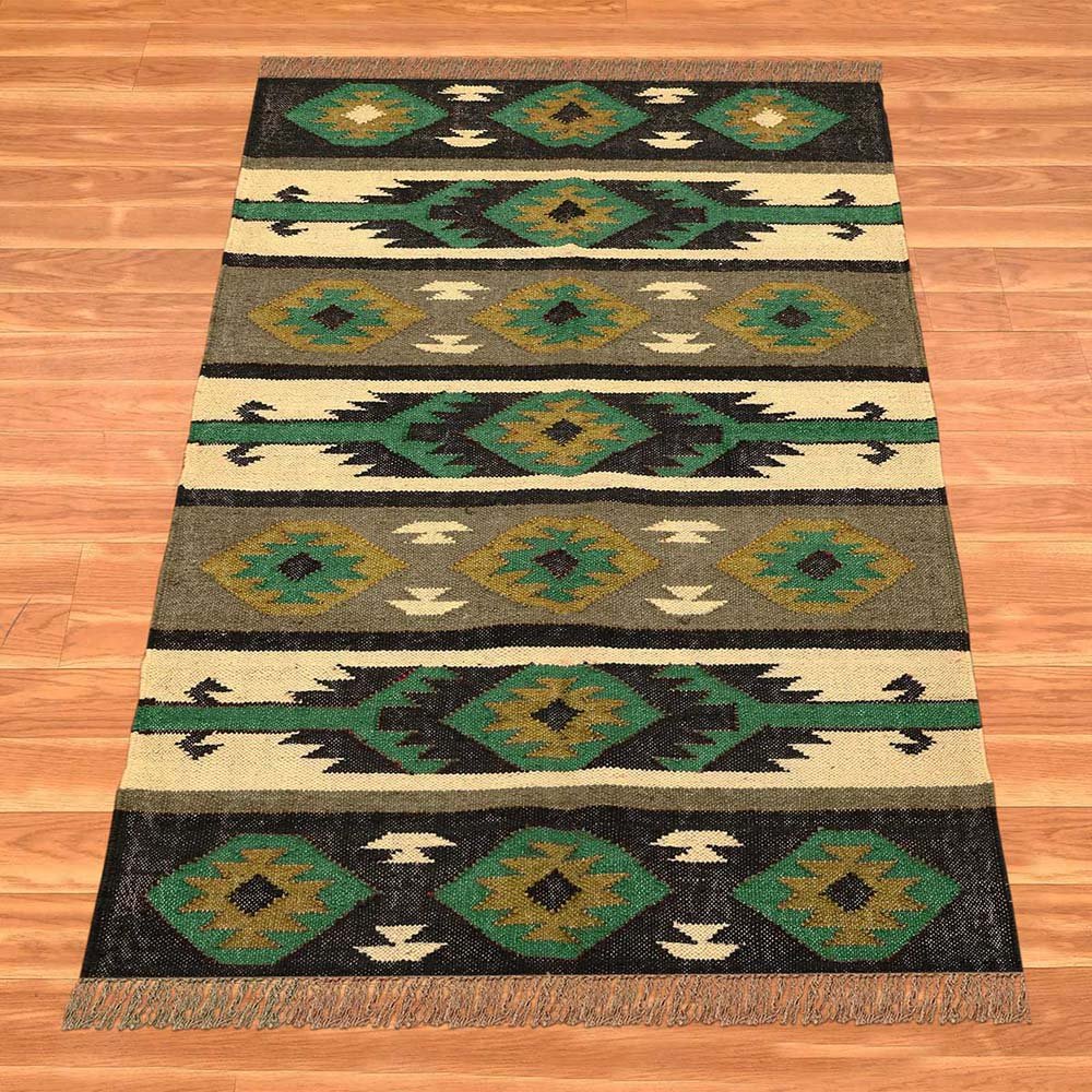 Be the first to review “Hand Woven Green Geometric Wool Jute Rug”