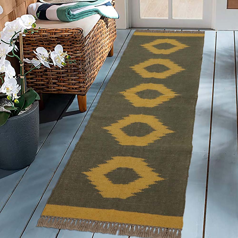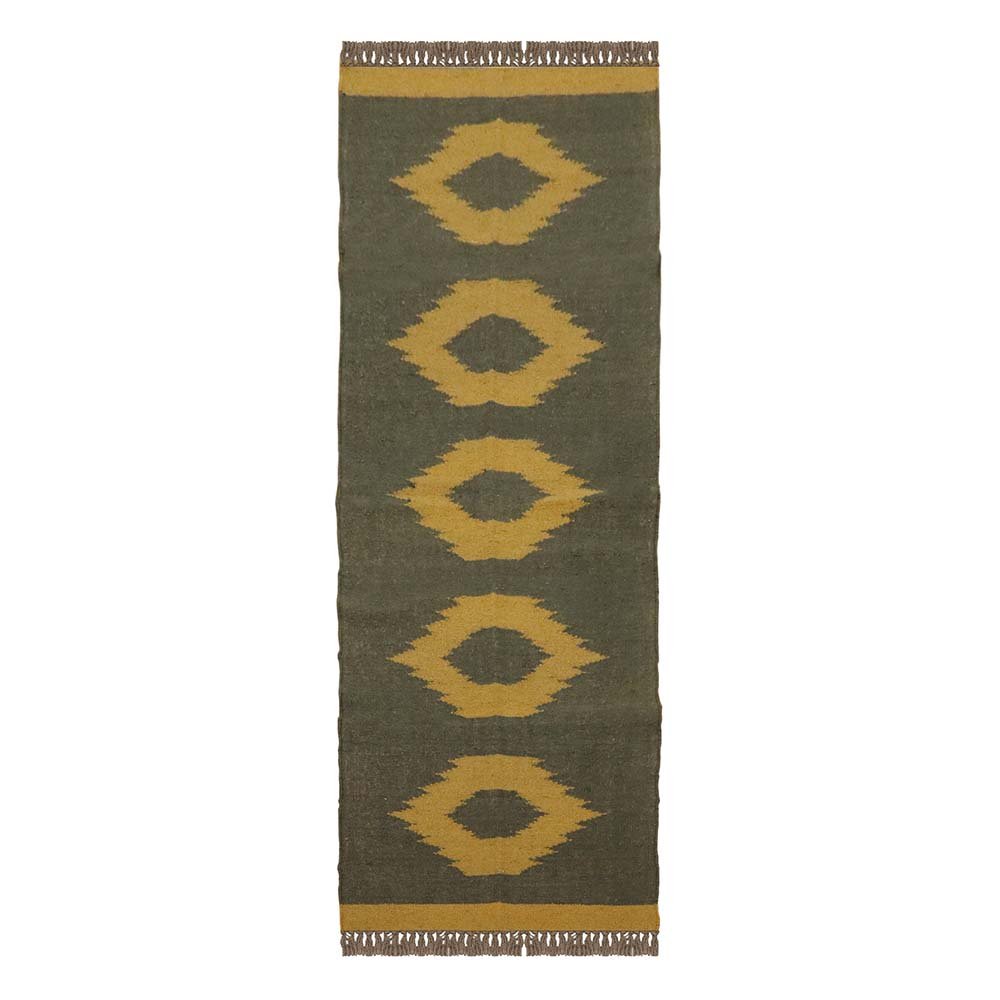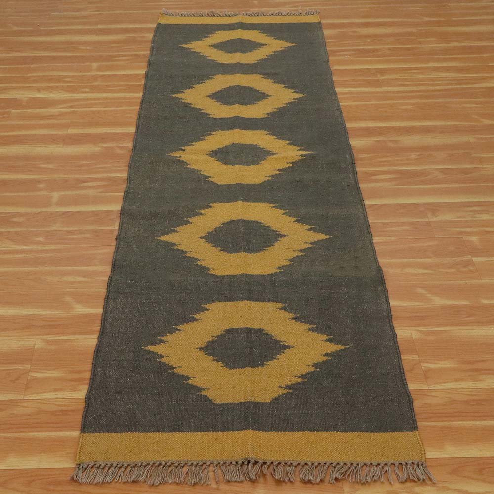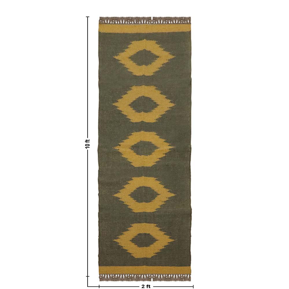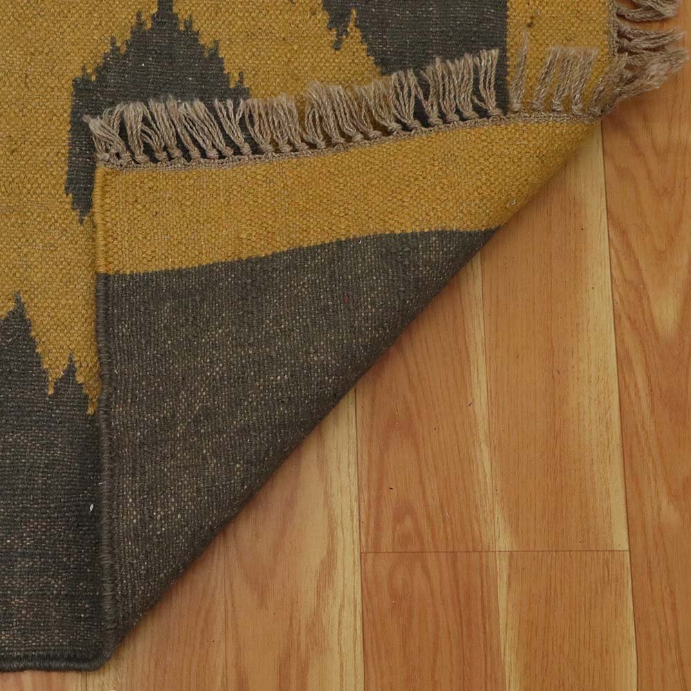 The rug is the result of a 100% handmade process using natural wool and jute, both of which are 100% eco-friendly. Jute, the second most cultivated vegetable fiber in the world after cotton, and wool are meticulously handwoven to create this beautiful rug. The manufacturing process of this wool and jute rug is entirely handcrafted and eco-friendly, starting from the cultivation of natural jute fiber to the hand-weaving of these jute yarns.