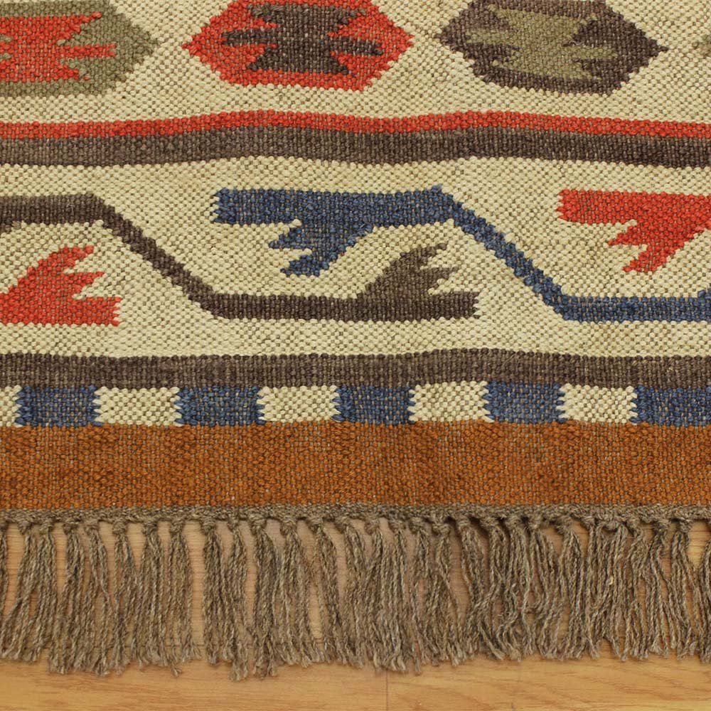 The rug is the result of a 100% handmade process using natural wool and jute, both of which are 100% eco-friendly. Jute, the second most cultivated vegetable fiber in the world after cotton, and wool are meticulously handwoven to create this beautiful rug. The manufacturing process of this wool and jute rug is entirely handcrafted and eco-friendly, starting from the cultivation of natural jute fiber to the hand-weaving of these jute yarns.