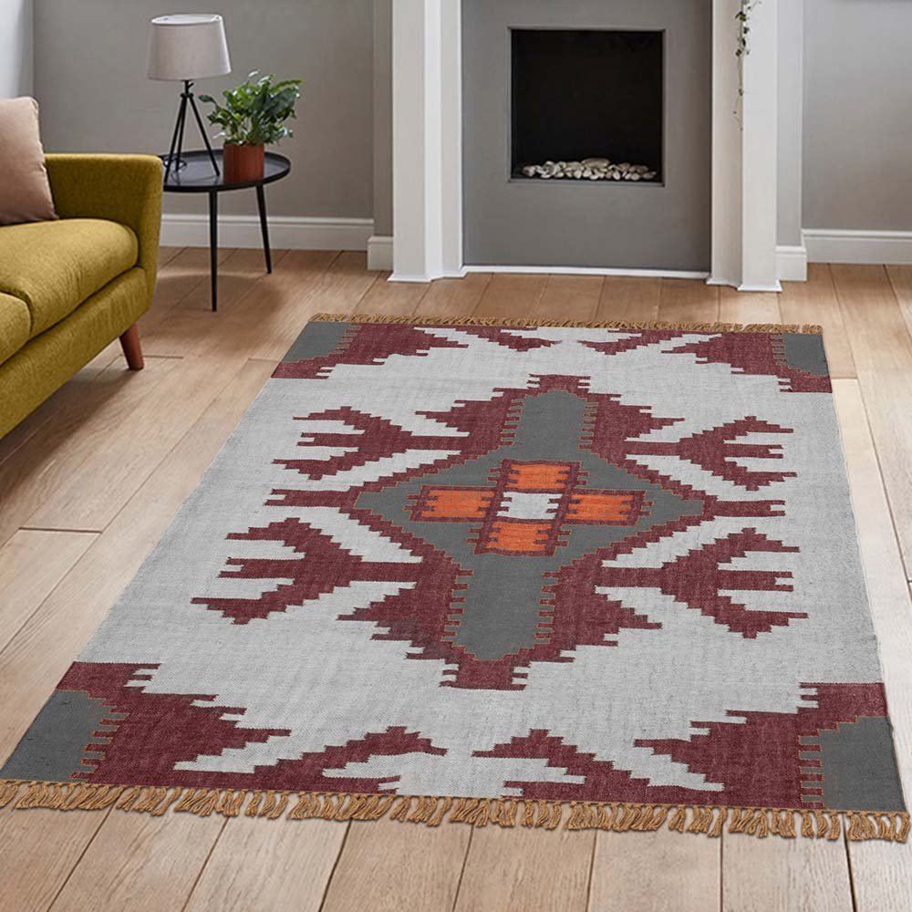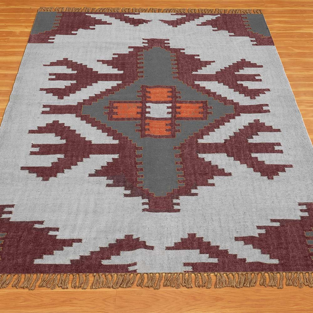 Hand Woven Wool Jute Kilim Multicolor Rug