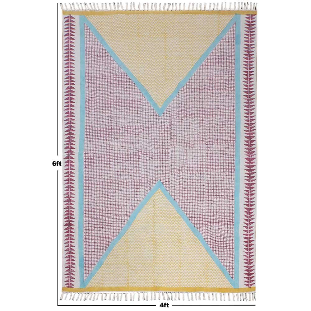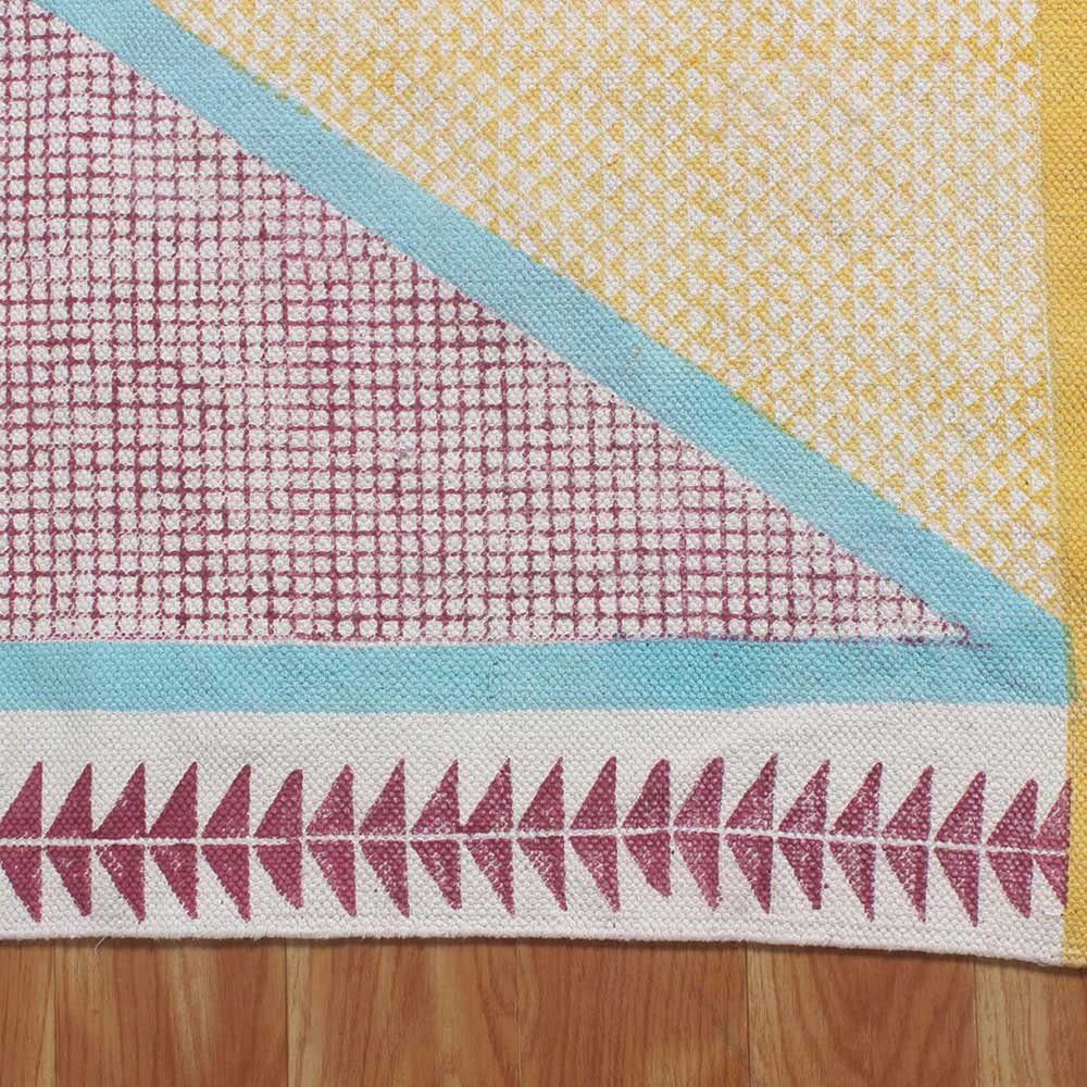 Handmade Block Printed Beautiful Yellow Cotton Rug