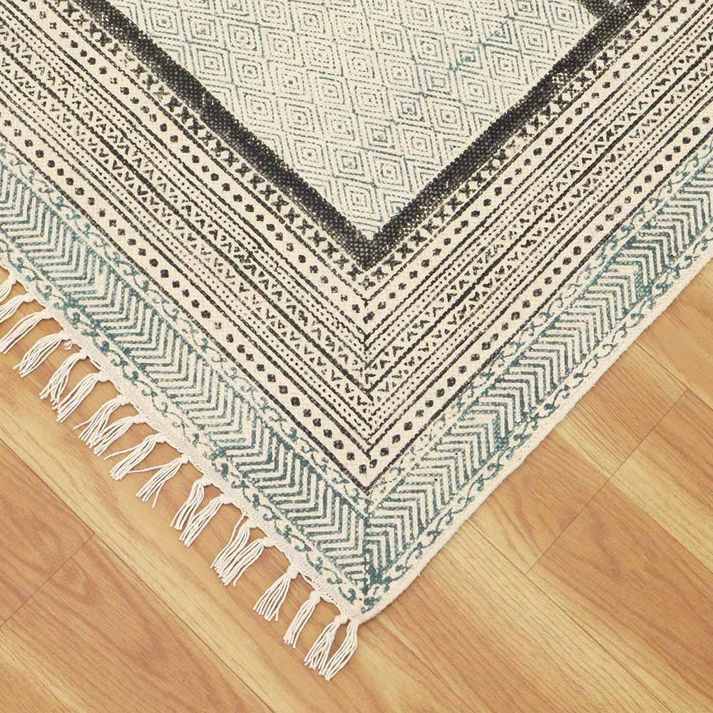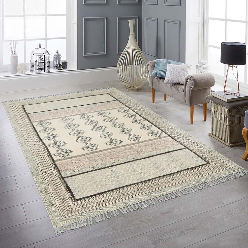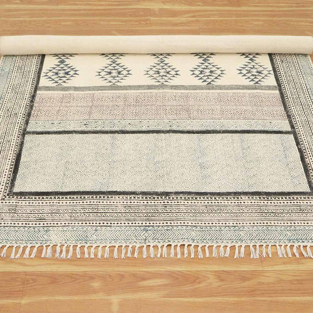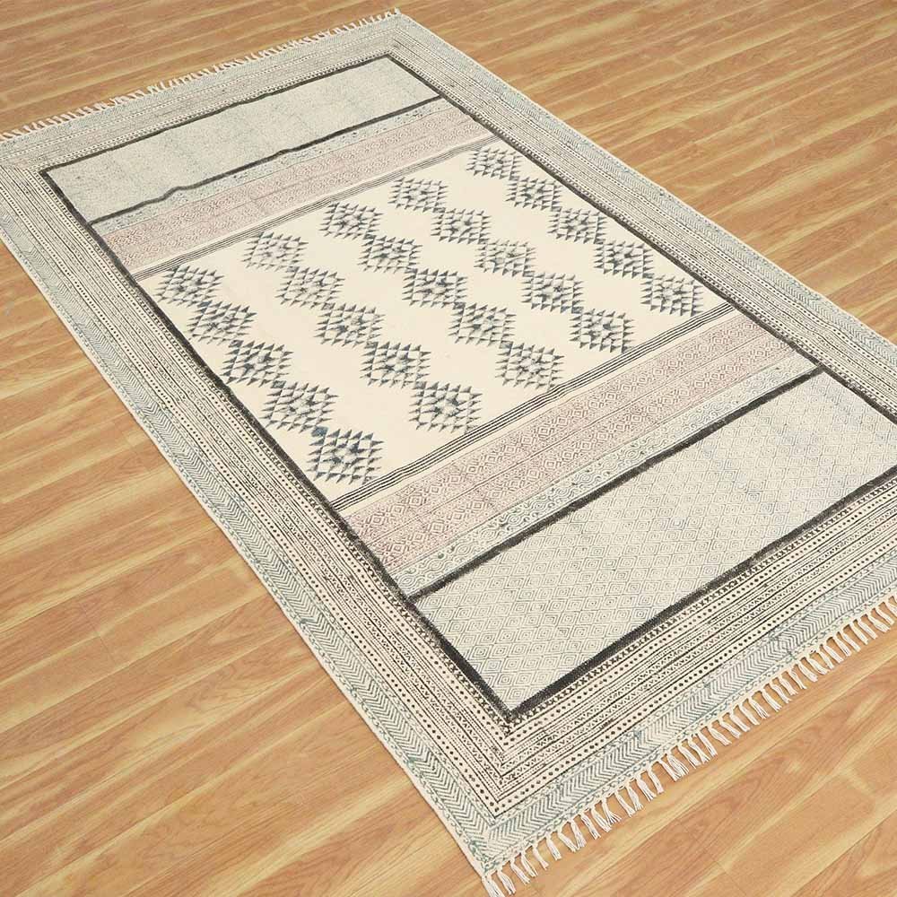 This is a beautiful handmade Cotton kilim rug weaved on Indian looms stamped with natural vegetable-dyes using hand-made wooden blocks achieving the perfection of block printing art of Jaipur. This is best suitable for your home office entrance, bedroom, living room, kids room, dining room, kitchen,outdoor patio, terrace, beach and garden.