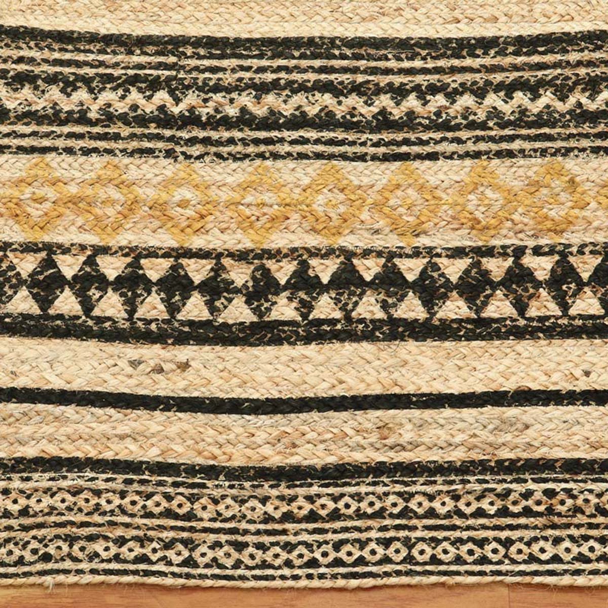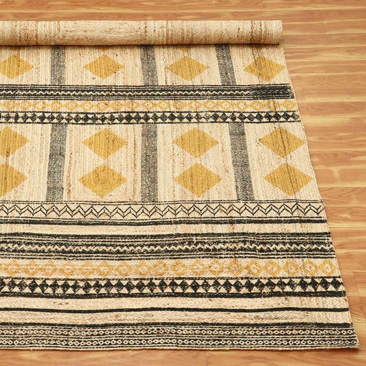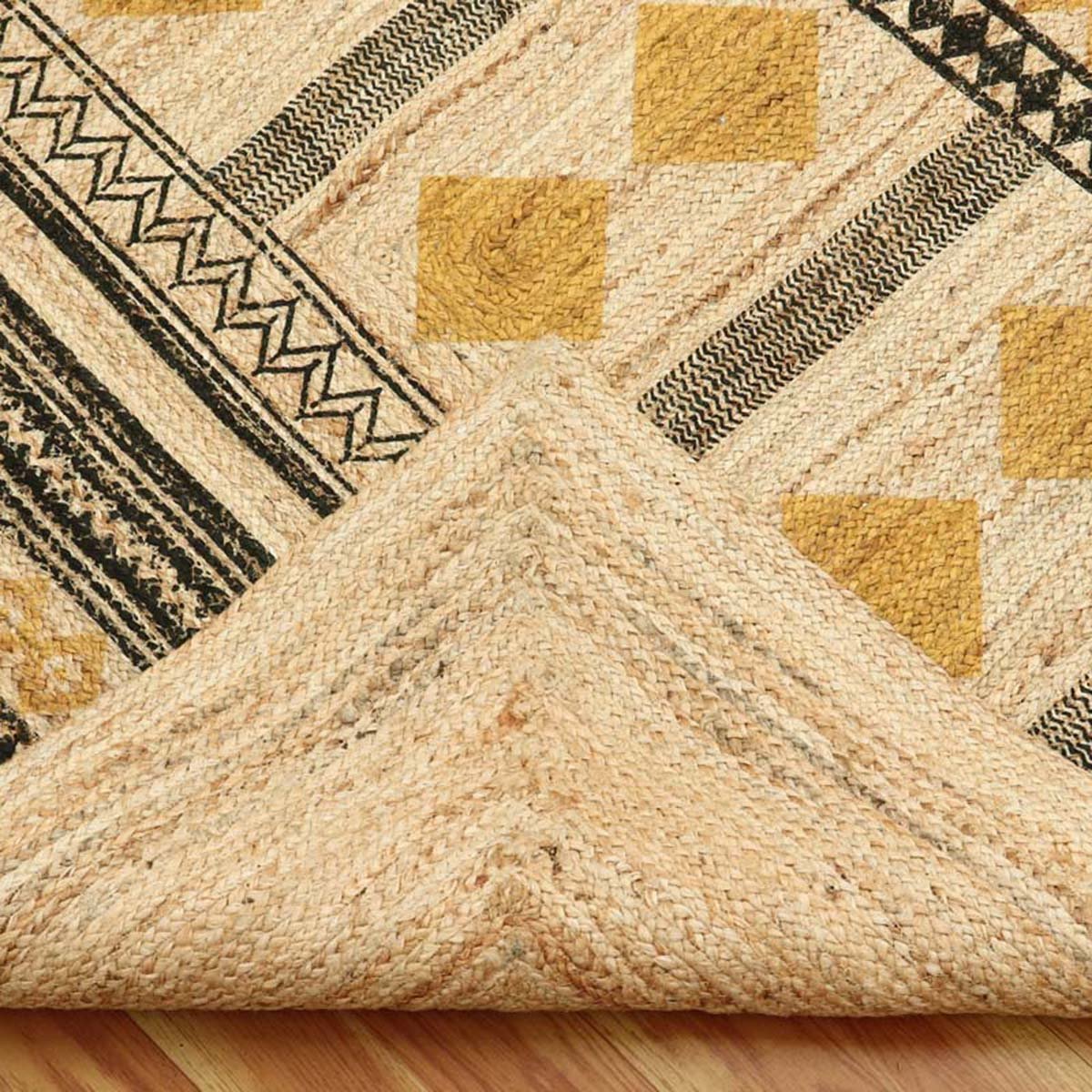 Hand Block Printed Jute Geometric Yellow Rug