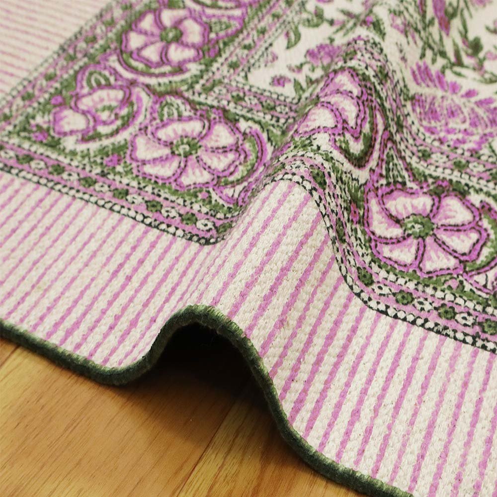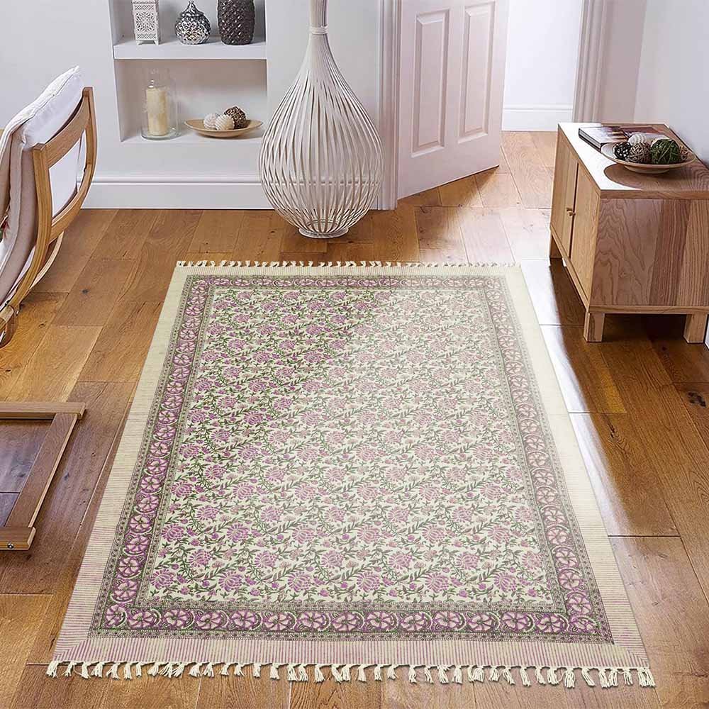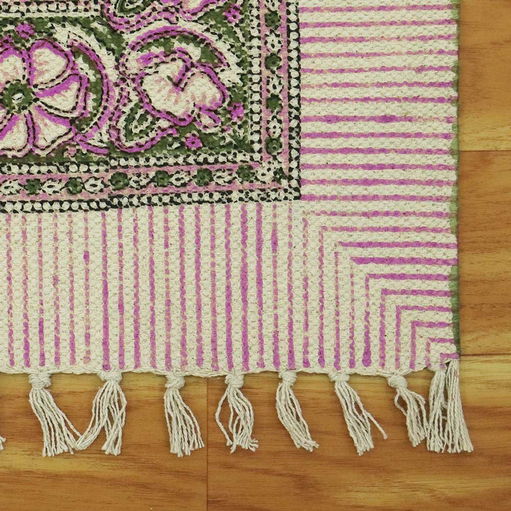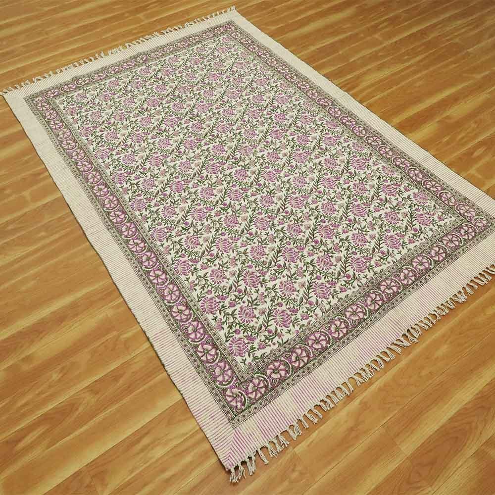 This is a beautiful handmade Cotton kilim rug weaved on Indian looms stamped with natural vegetable-dyes using hand-made wooden blocks achieving the perfection of block printing art of Jaipur. This is best suitable for your home office entrance, bedroom, living room, kids room, dining room, kitchen,outdoor patio, terrace, beach and garden.