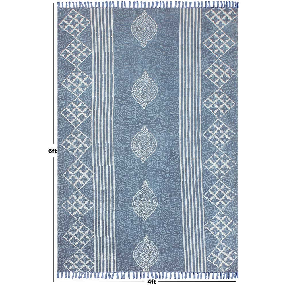 This is a beautiful handmade Cotton kilim rug weaved on Indian looms stamped with natural vegetable-dyes using hand-made wooden blocks achieving the perfection of block printing art of Jaipur. This is best suitable for your home office entrance, bedroom, living room, kids room, dining room, kitchen,outdoor patio, terrace, beach and garden.
