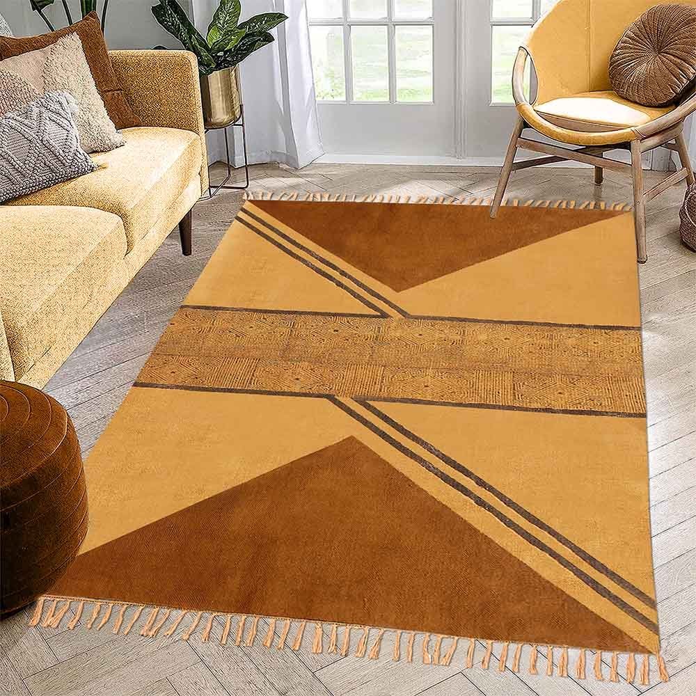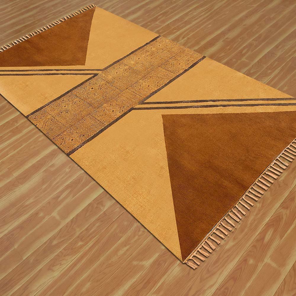 This is a beautiful handmade Cotton kilim rug weaved on Indian looms stamped with natural vegetable-dyes using hand-made wooden blocks achieving the perfection of block printing art of Jaipur. This is best suitable for your home office entrance, bedroom, living room, kids room, dining room, kitchen,outdoor patio, terrace, beach and garden.